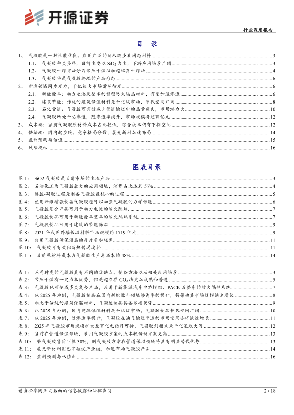 报告分别分析了气凝胶在新能源汽车、建筑保温和石化管道三个领域的应用情况及市场前景。