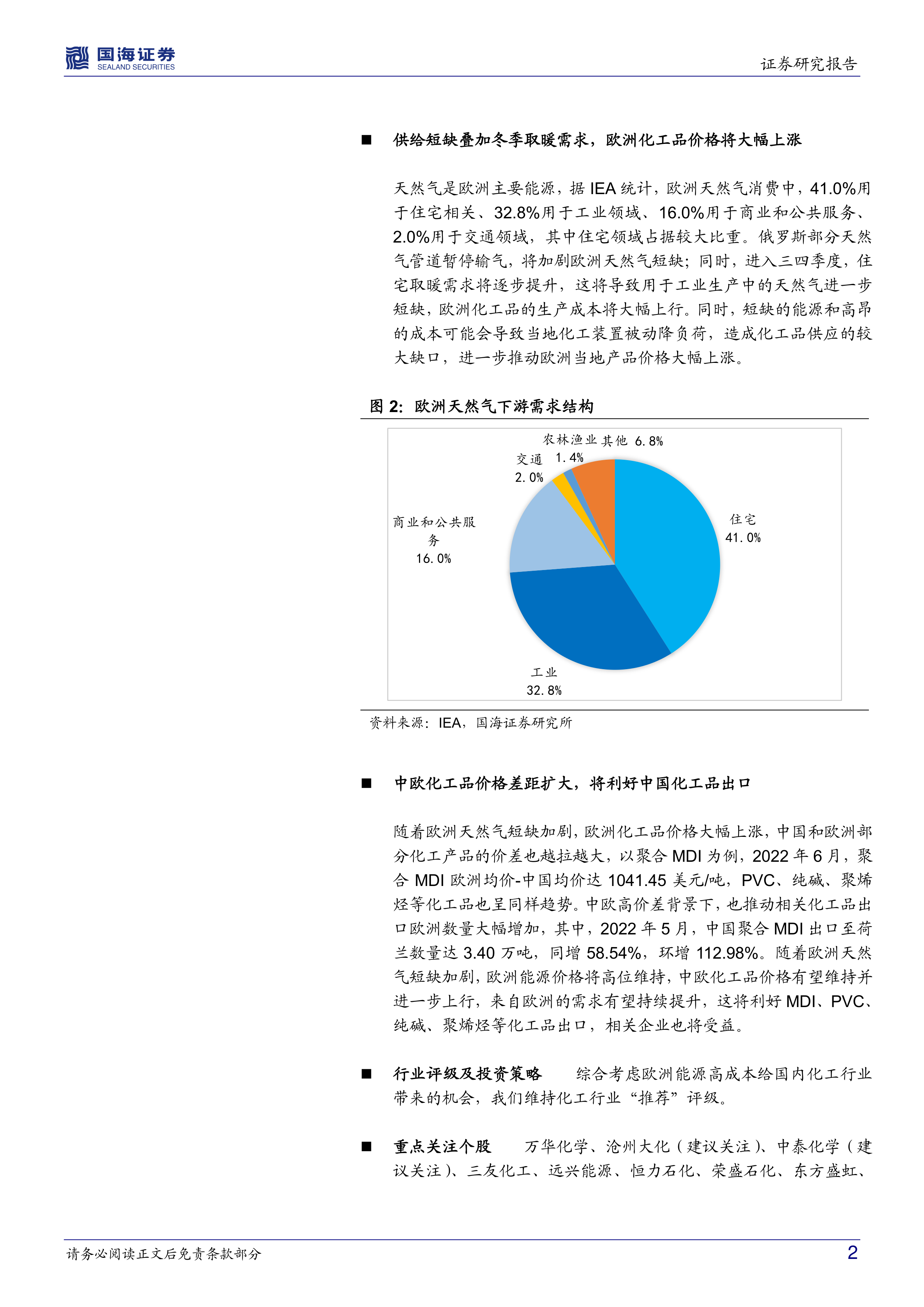 本报告主要从欧洲天然气短缺、中欧化工品价格差以及投资策略三个方面展开分析。