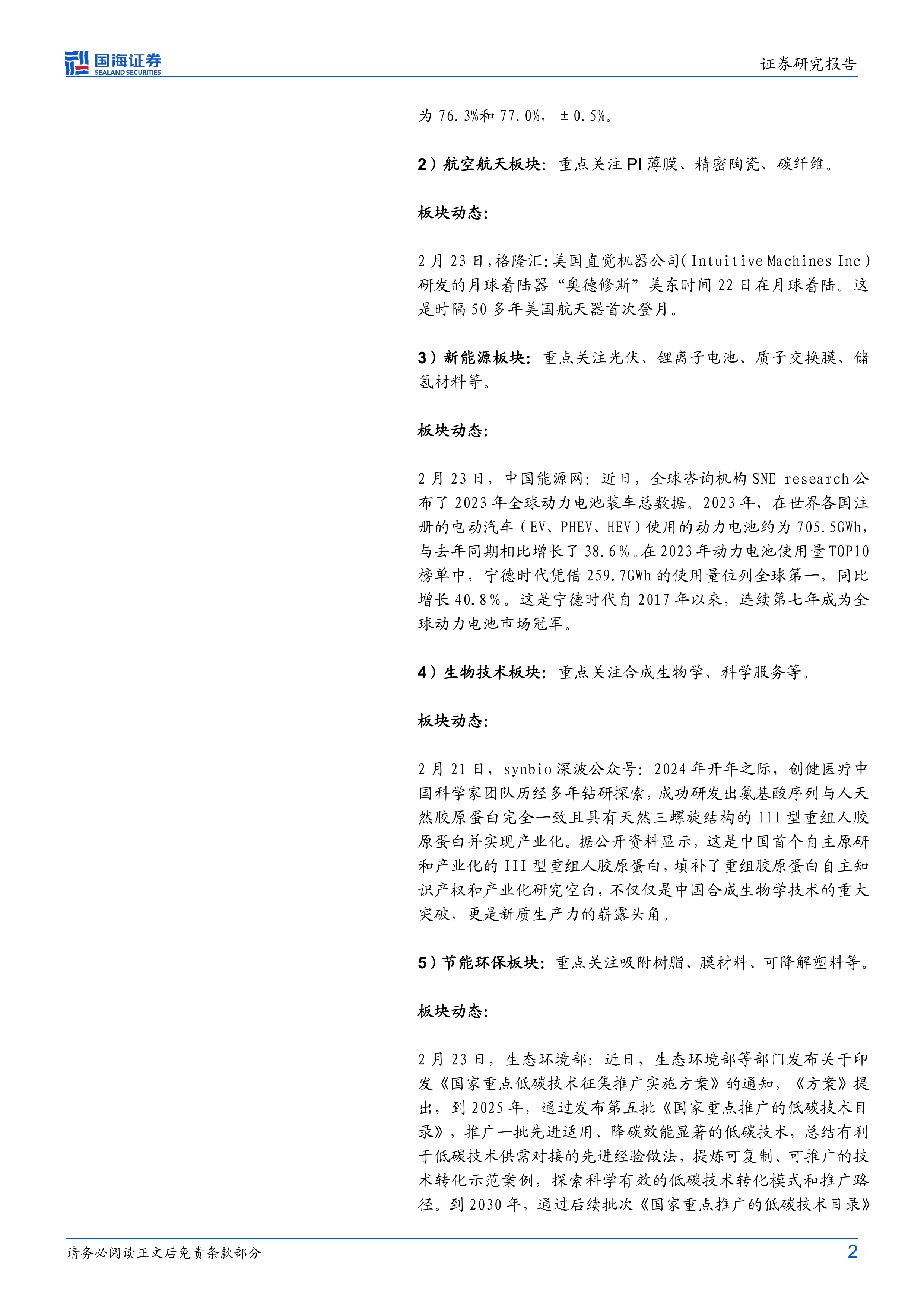 2月23日,生态环境部:近日,生态环境部等部门发布关于印发《国家重点低碳技术征集推广实施方案》的通知,《方案》提出,到2025年,通过发布第五批《国家重点推广的低碳技术目录》,推广一批先进适用、降碳效能显著的低碳技术,总结有利于低碳技术供需对接的先进经验做法,提炼可复制、可推广的技术转化示范案例,探索科学有效的低碳技术转化模式和推广路径。到2030年,通过后续批次《国家重点推广的低碳技术目录》