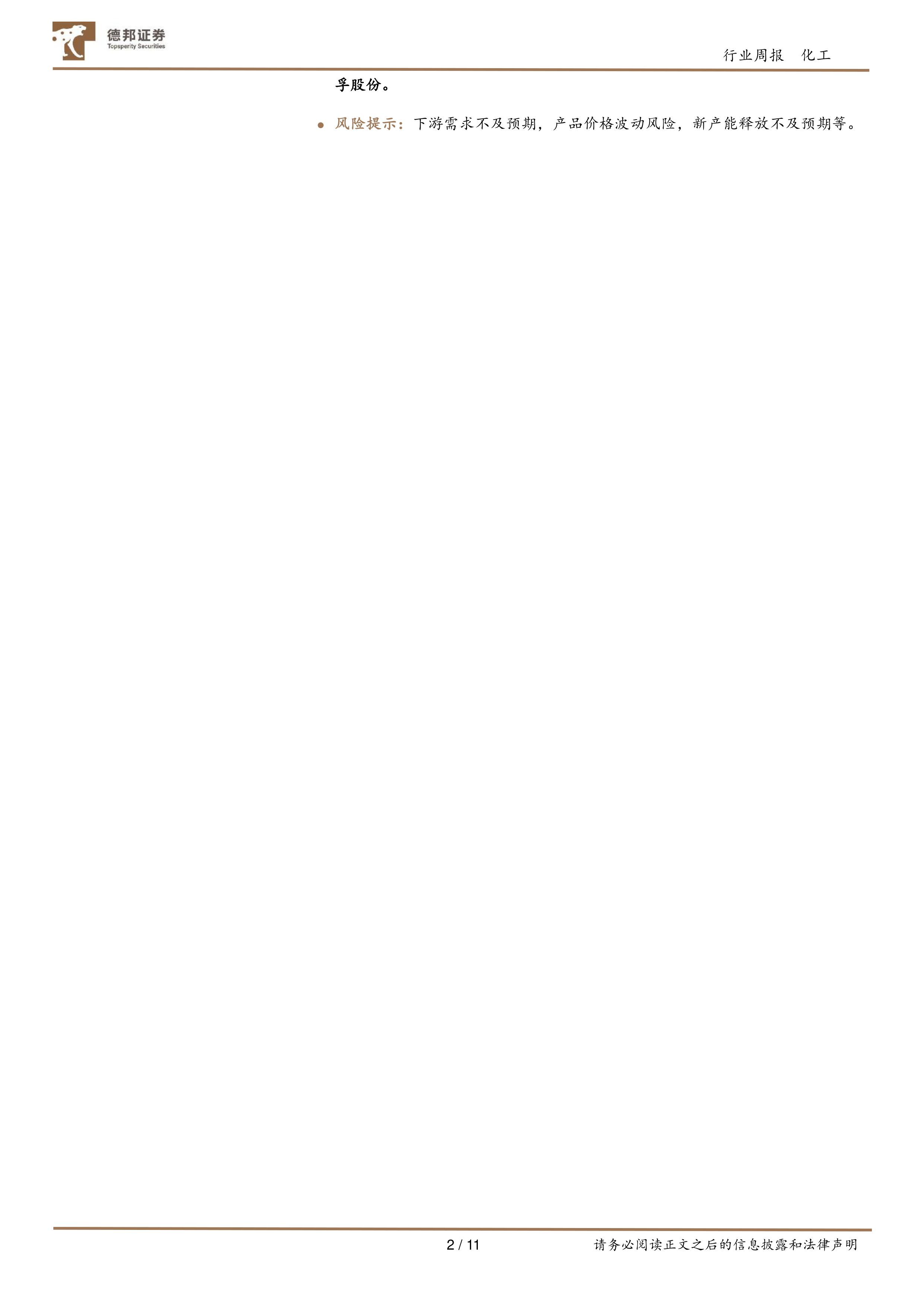 风险提示:下游需求不及预期,产品价格波动风险,新产能释放不及预期等。