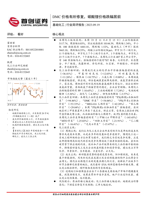 基础化工行业简评报告:DMC价格有所修复,碳酸锂价格跌幅居前