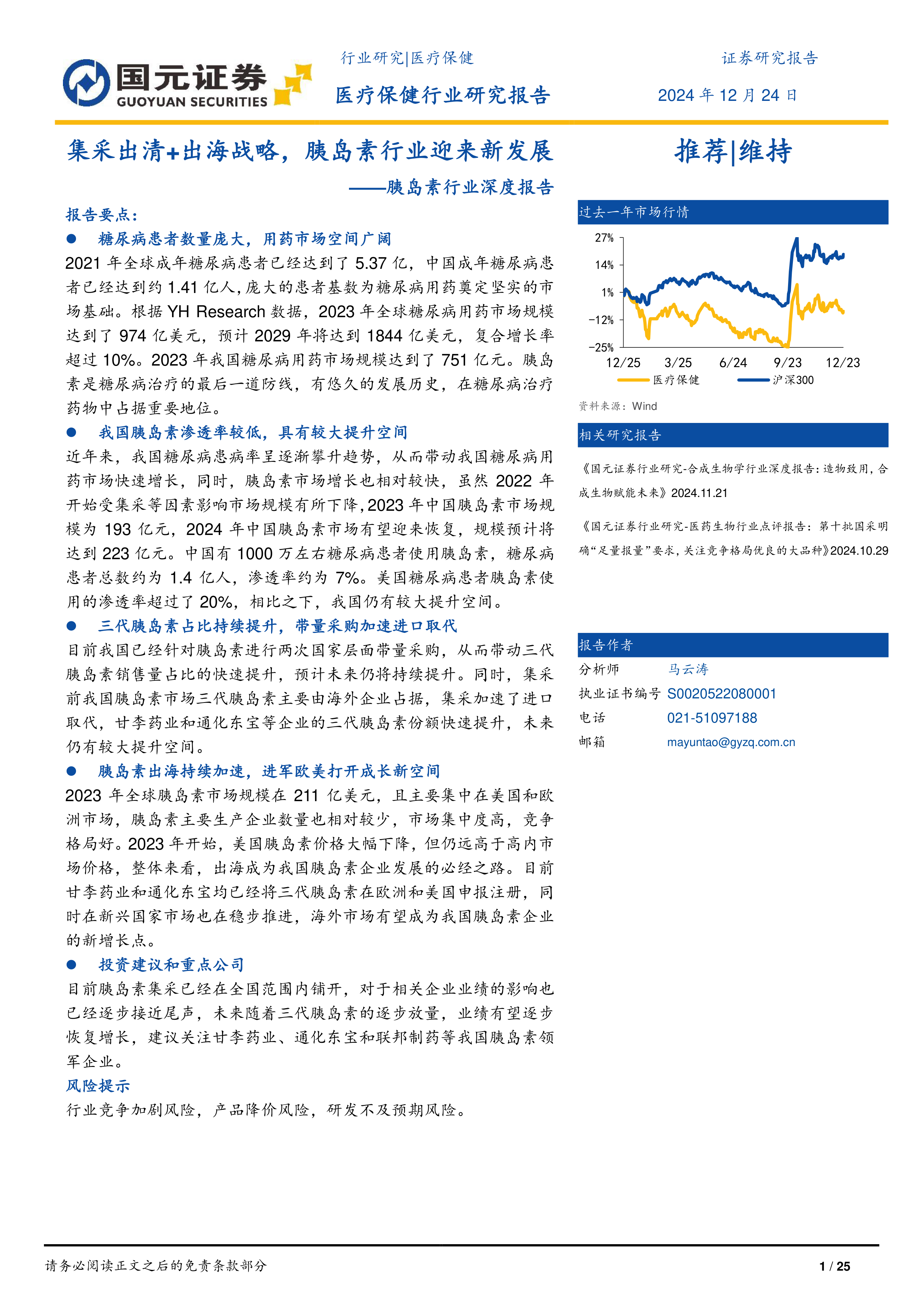 胰岛素行业深度报告:集采出清+出海战略,胰岛素行业迎来新发展