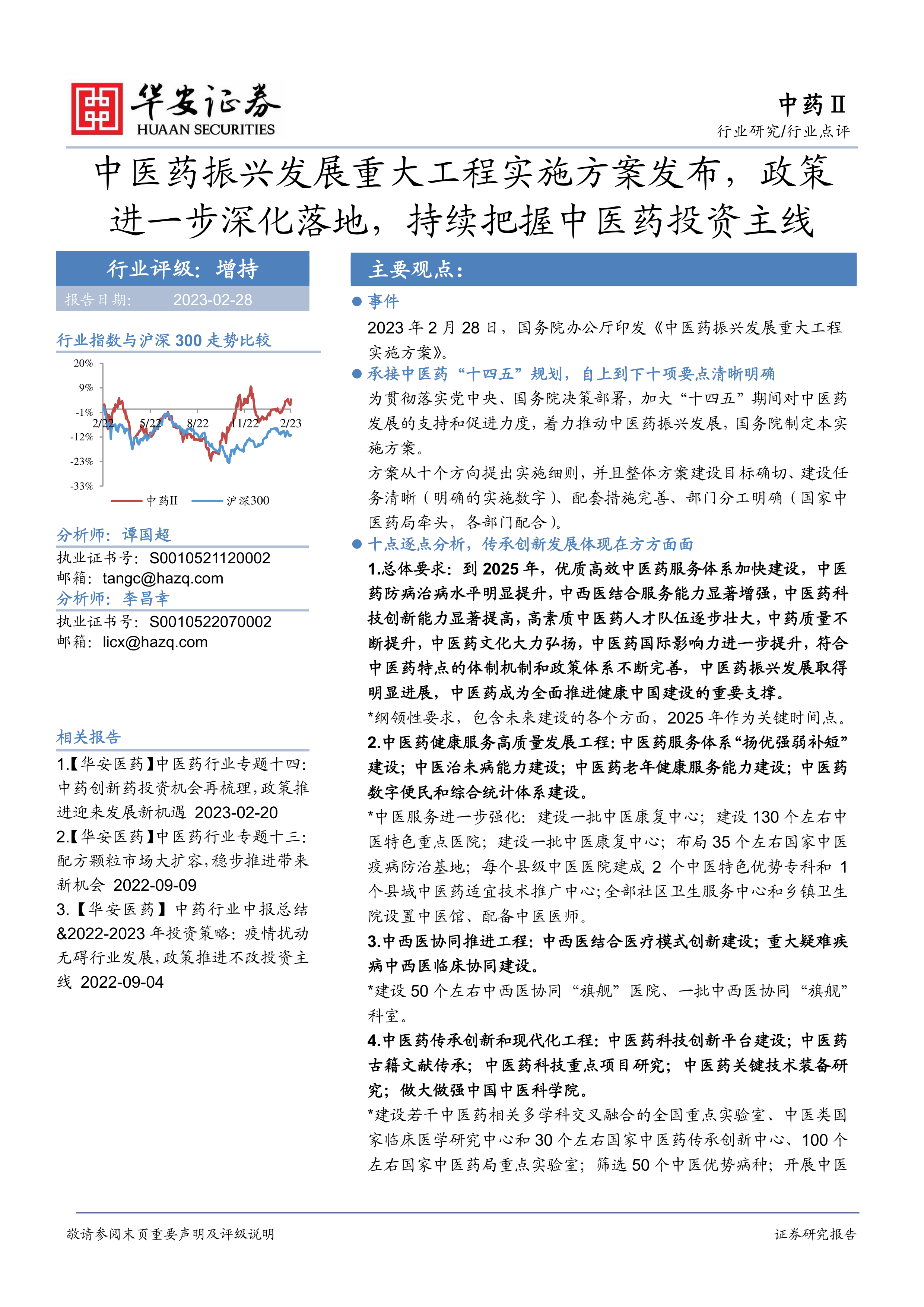 2023 年 2 月 28 日,国务院办公厅印发《中医药振兴发展重大工程实施方案》。