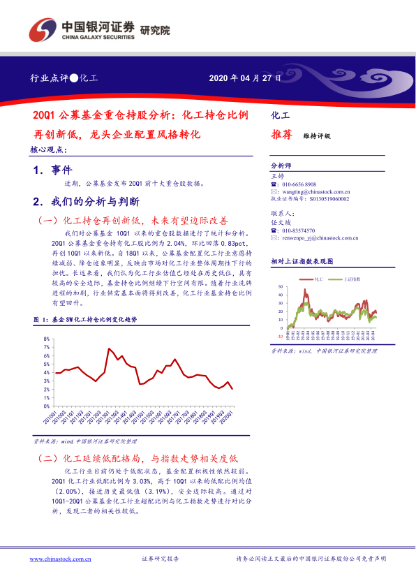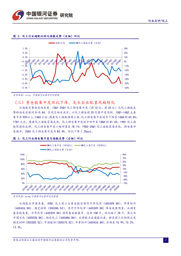 20Q1公募基金重仓持股分析:化工持仓比例再创新低,龙头企业配置风格转化