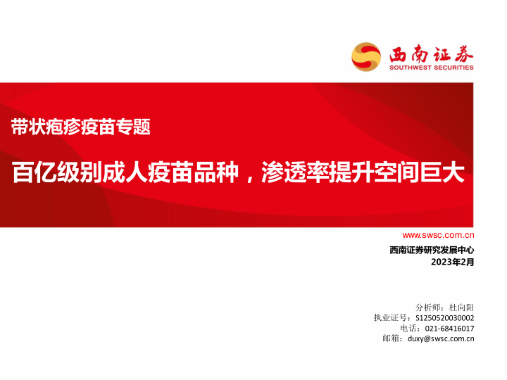 带状疱疹疫苗专题:百亿级别成人疫苗品种,渗透率提升空间巨大