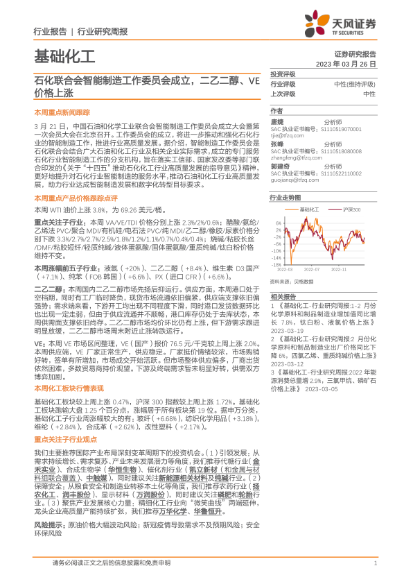 基础化工行业研究周报:石化联合会智能制造工作委员会成立,二乙二醇、VE价格上涨