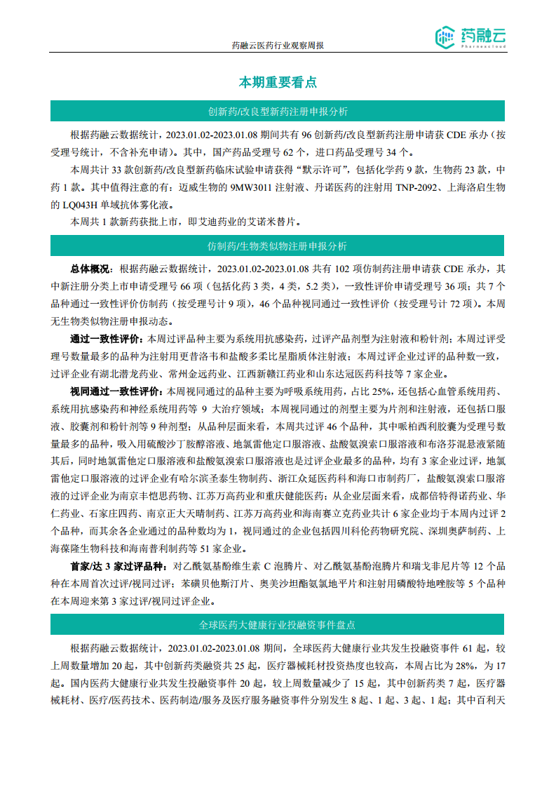 摩熵咨询医药行业观察周报(2023.01.02-2023.01.08)