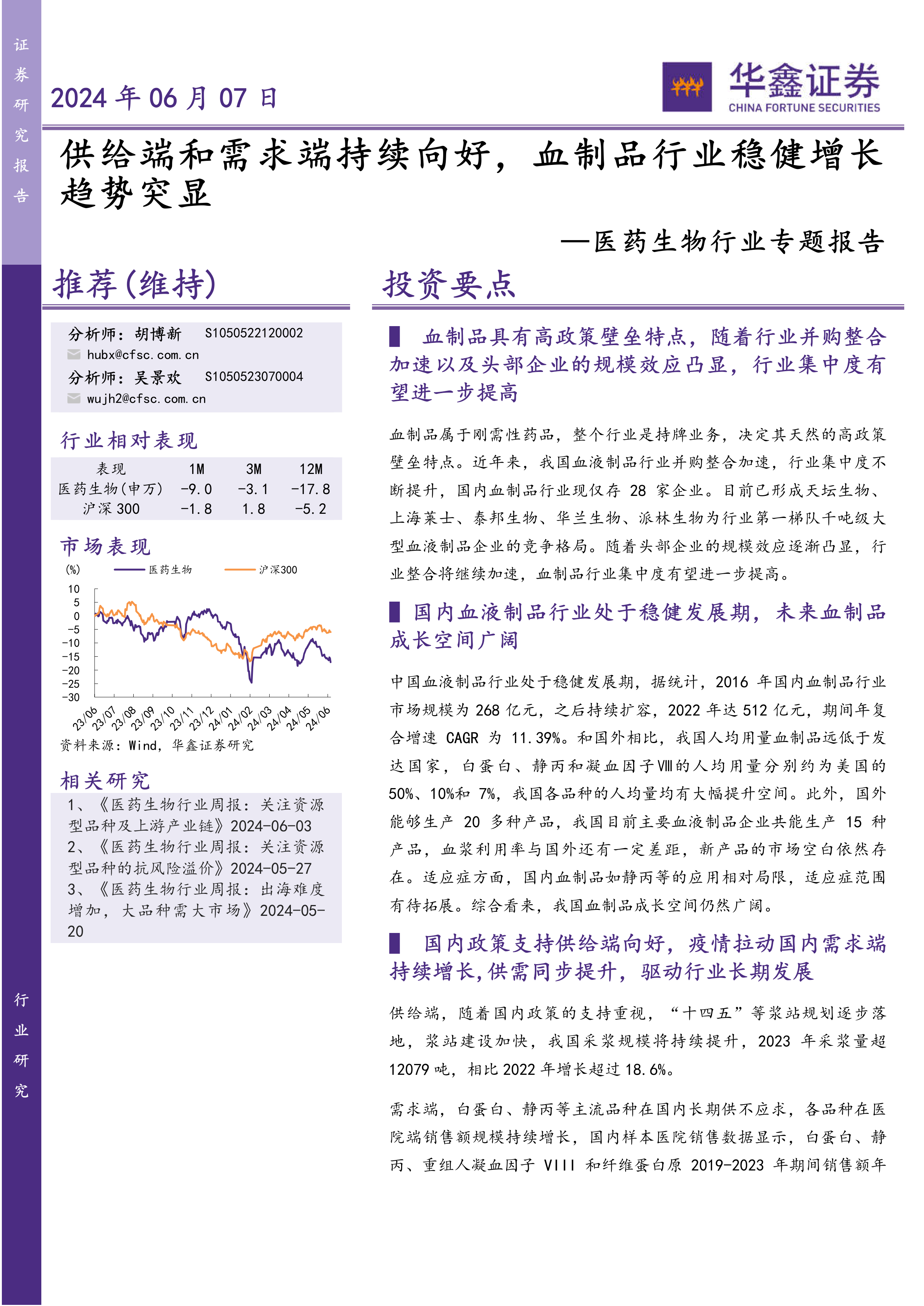 医药生物行业专题报告:供给端和需求端持续向好,血制品行业稳健增长趋势突显