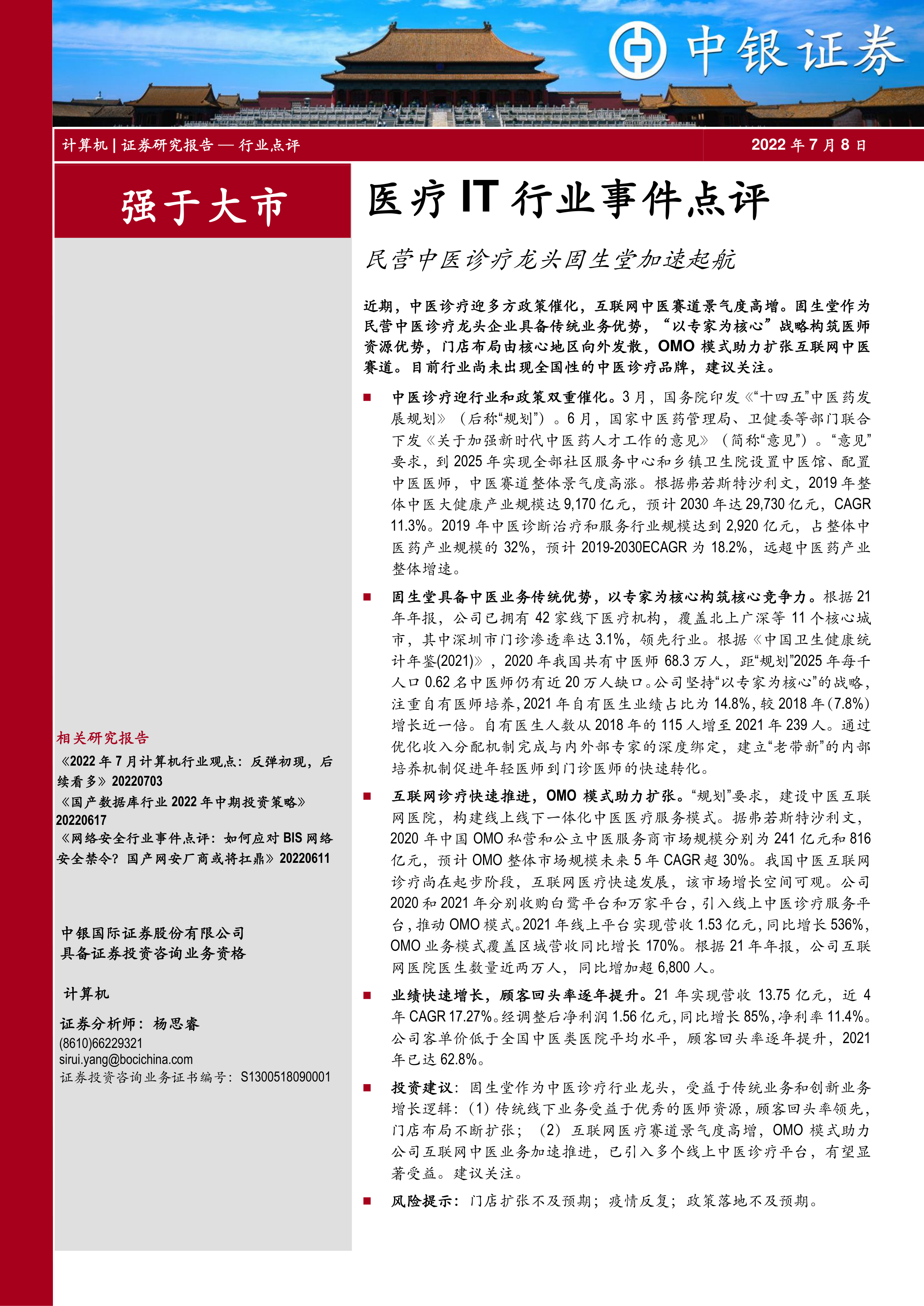 医疗IT行业事件点评:民营中医诊疗龙头固生堂加速起航