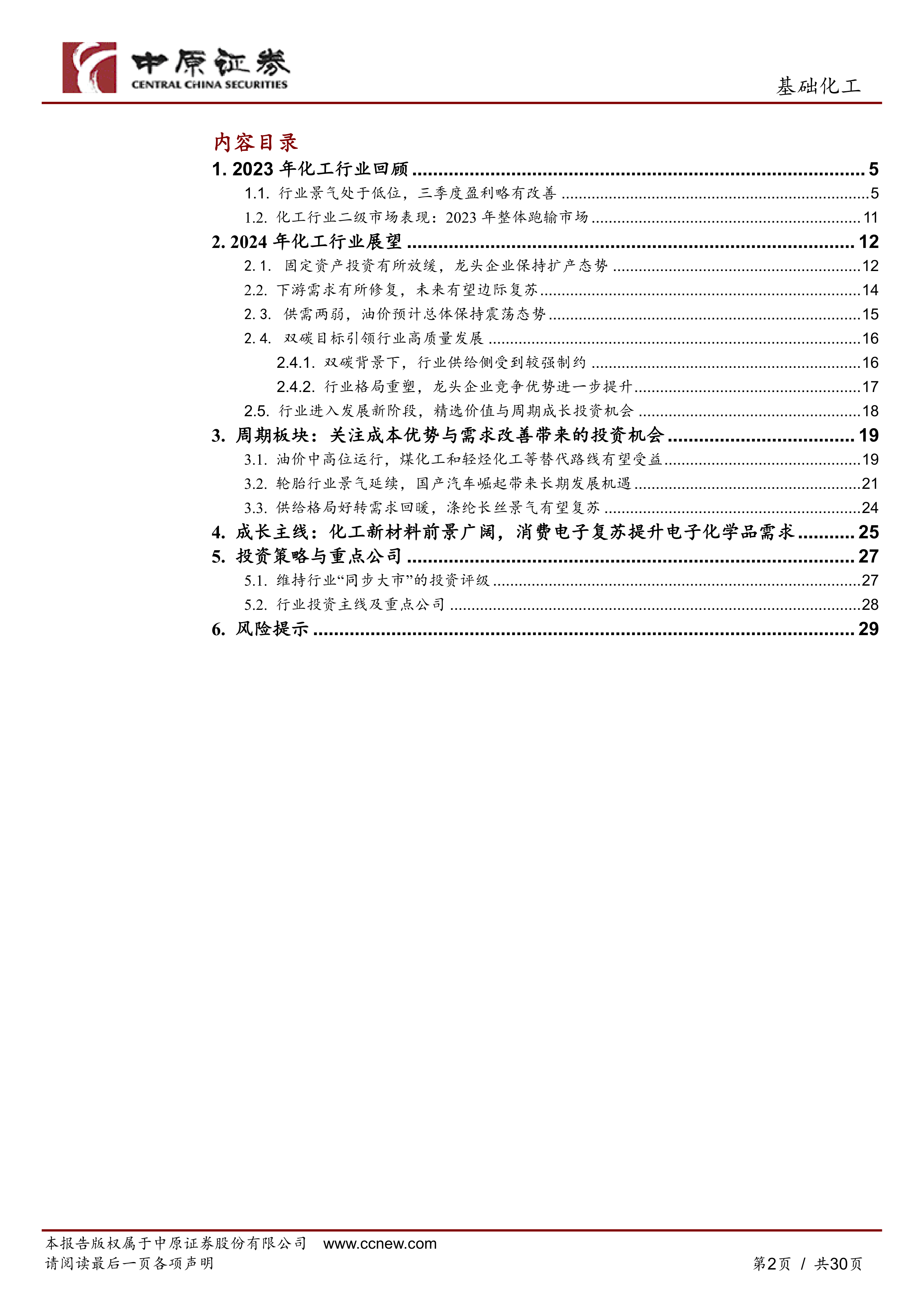 本报告按照目录结构,对2023年化工行业回顾和2024年化工行业展望进行了详细阐述。