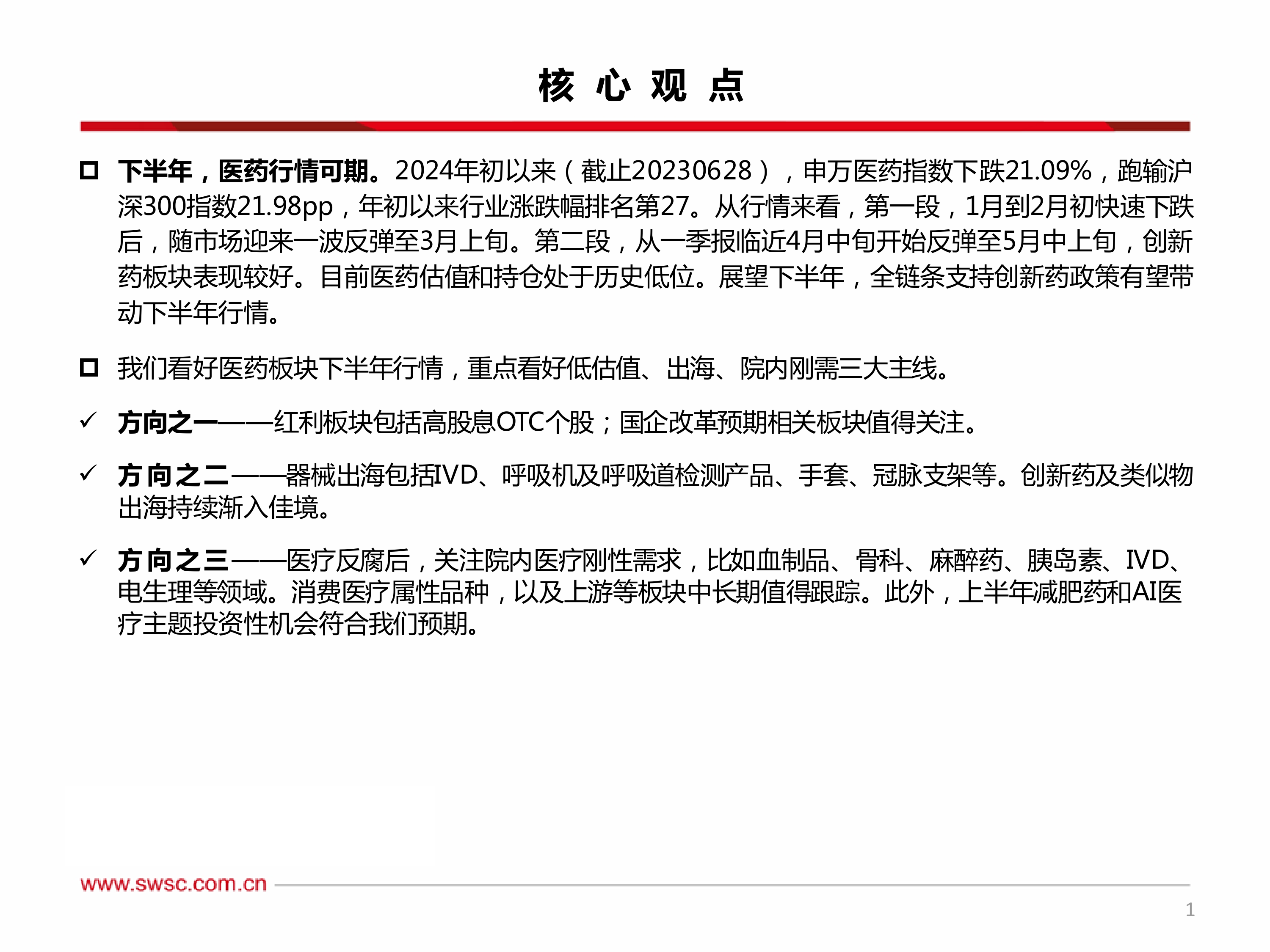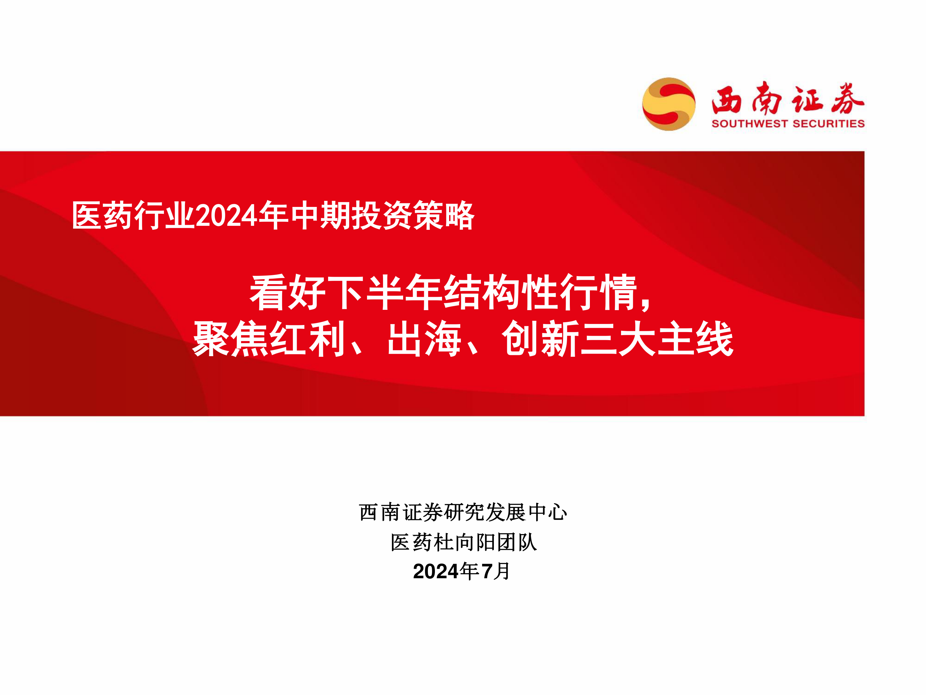 医药行业2024年中期投资策略:看好下半年结构性行情,聚焦红利、出海、创新三大主线