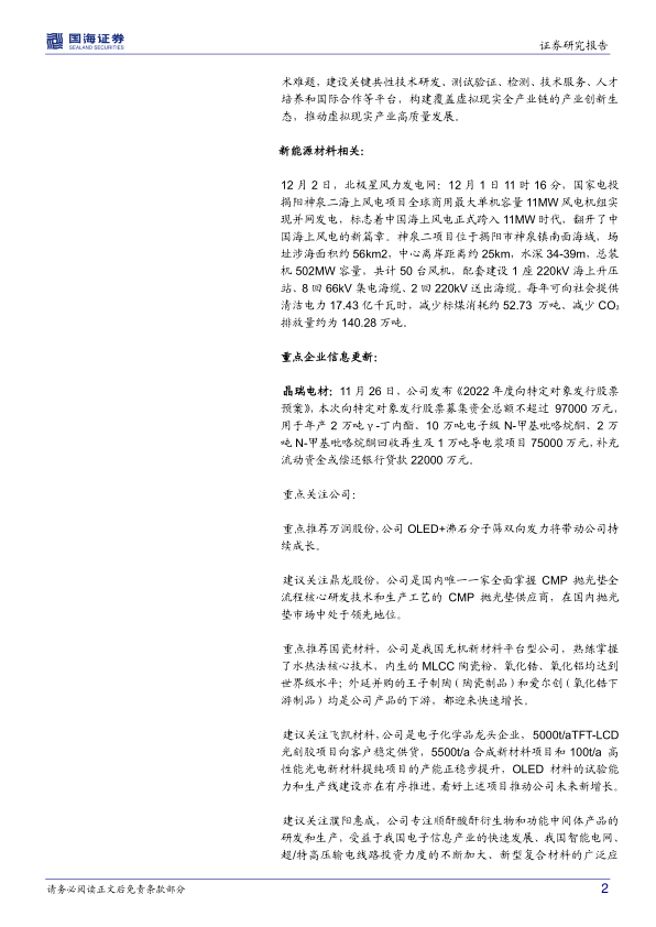 公司信息: 报告重点关注了晶瑞电材的定增计划以及国瓷材料的股份回购进展。