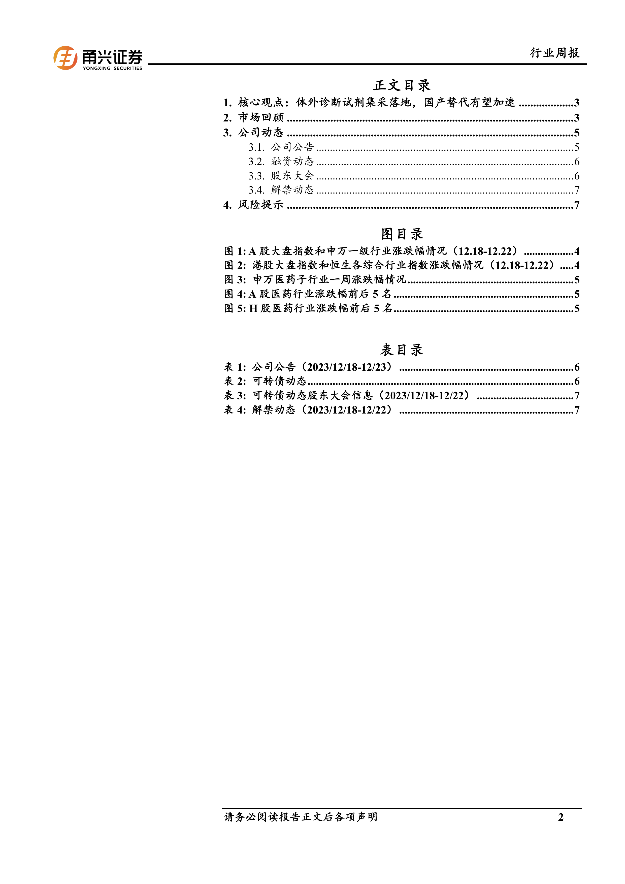 报告详细列出了2023年12月18日至23日期间医药生物行业上市公司的公告、融资、股东大会及解禁信息。