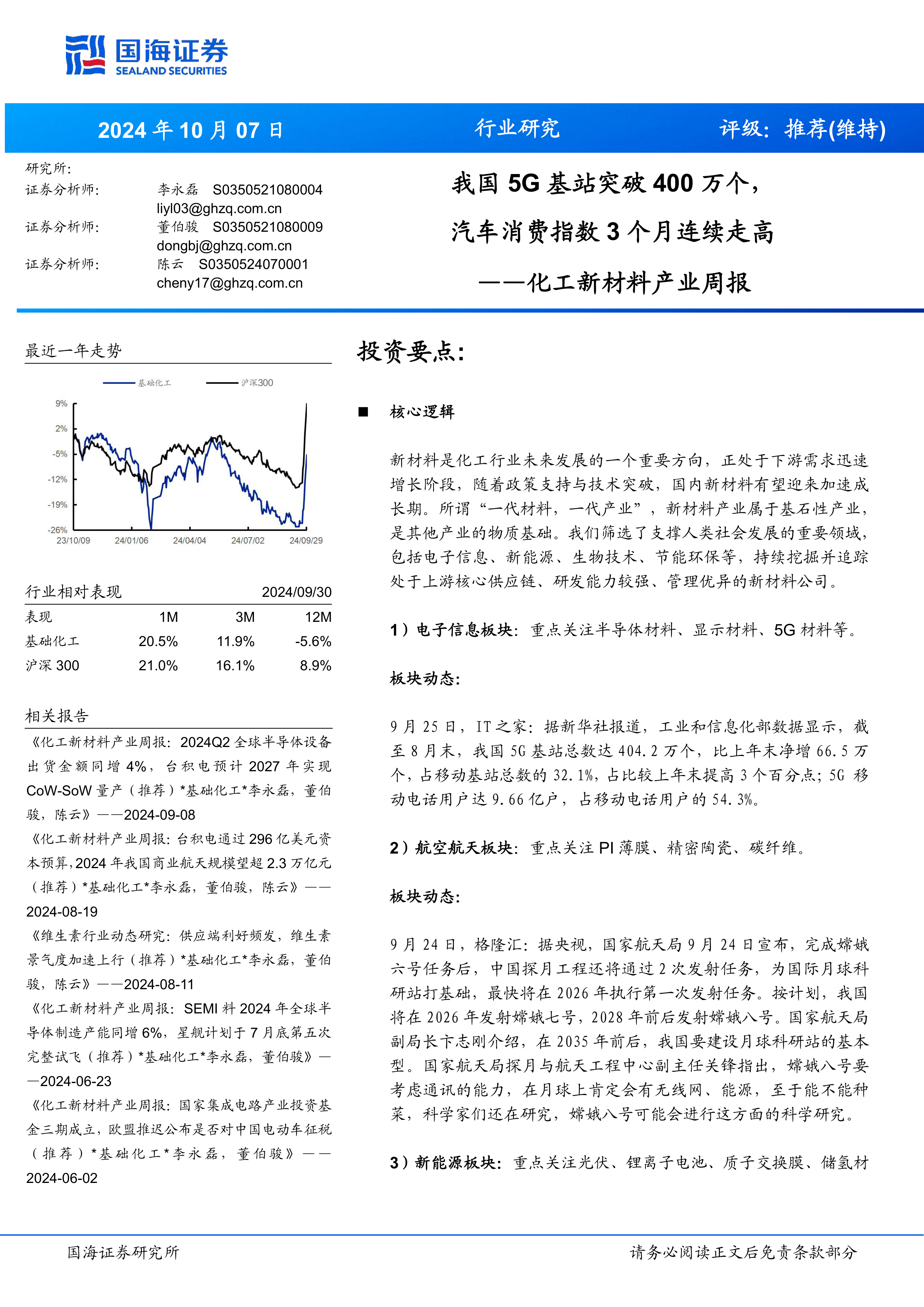 化工新材料产业周报:我国5G基站突破400万个,汽车消费指数3个月连续走高