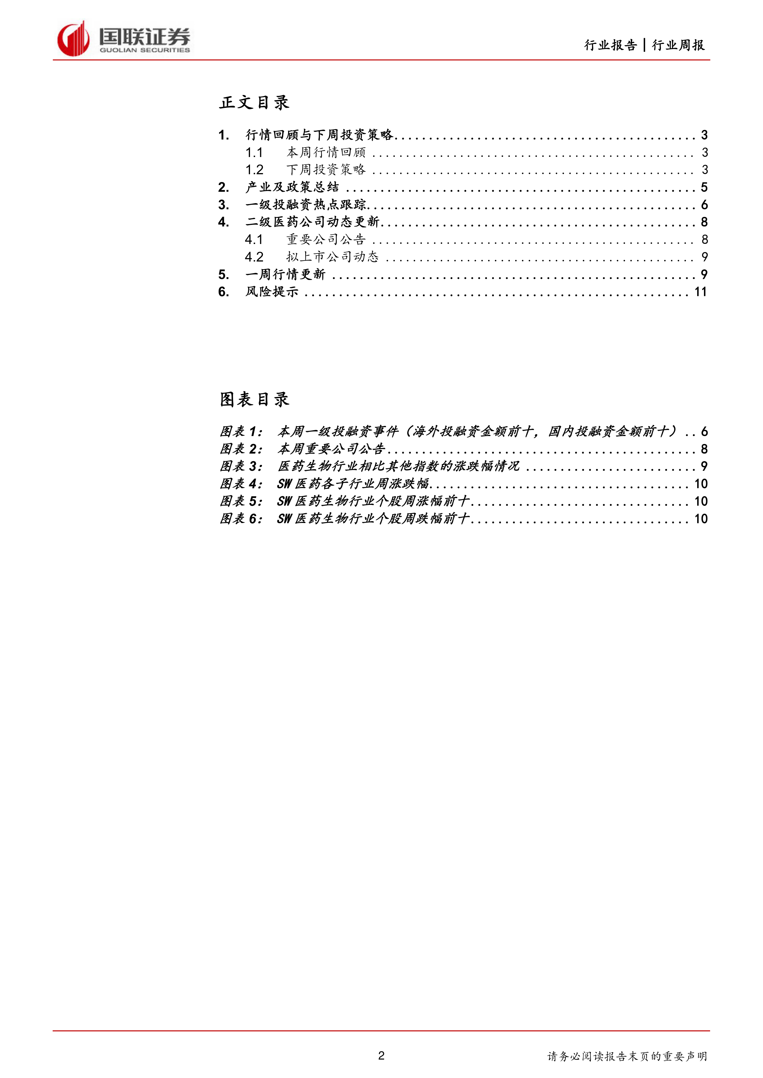 报告提供了本周重要公司公告的表格(图表2),包括公司名称、公告日期、公告类型和公告内容,涵盖研发进展、股权投资等方面。