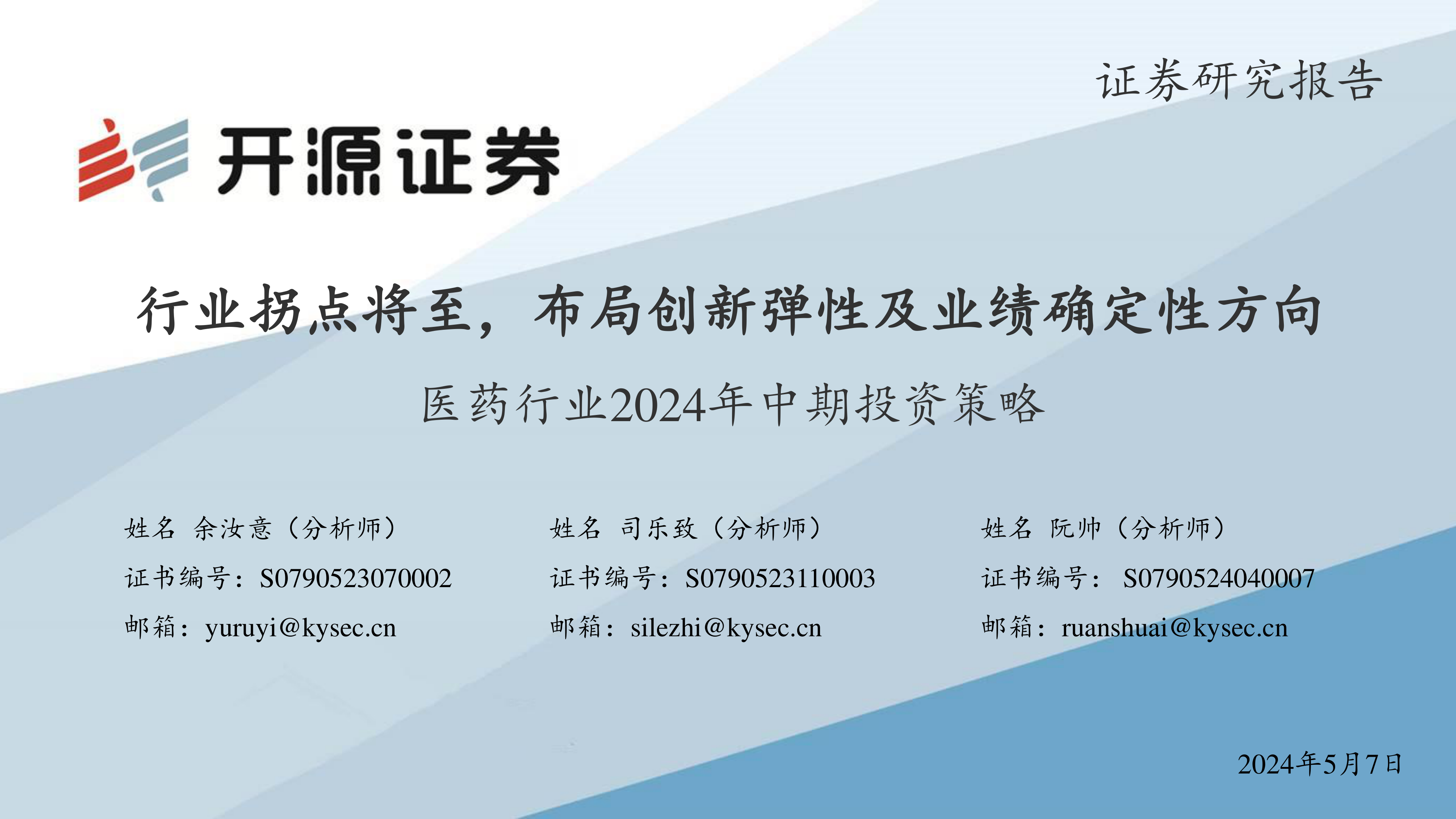 医药行业2024年中期投资策略:行业拐点将至,布局创新弹性及业绩确定性方向