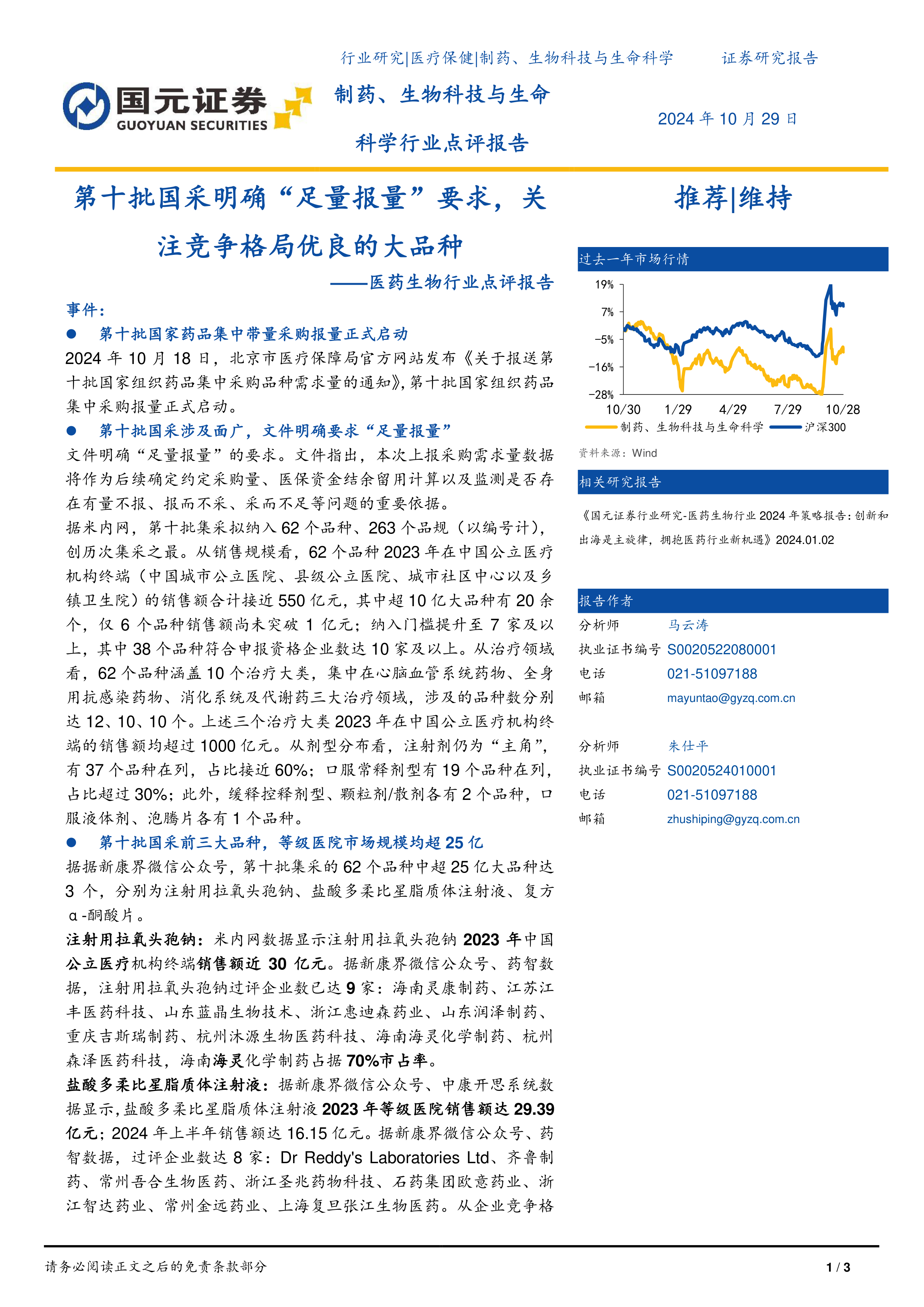 医药生物行业点评报告:第十批国采明确“足量报量”要求,关注竞争格局优良的大品种