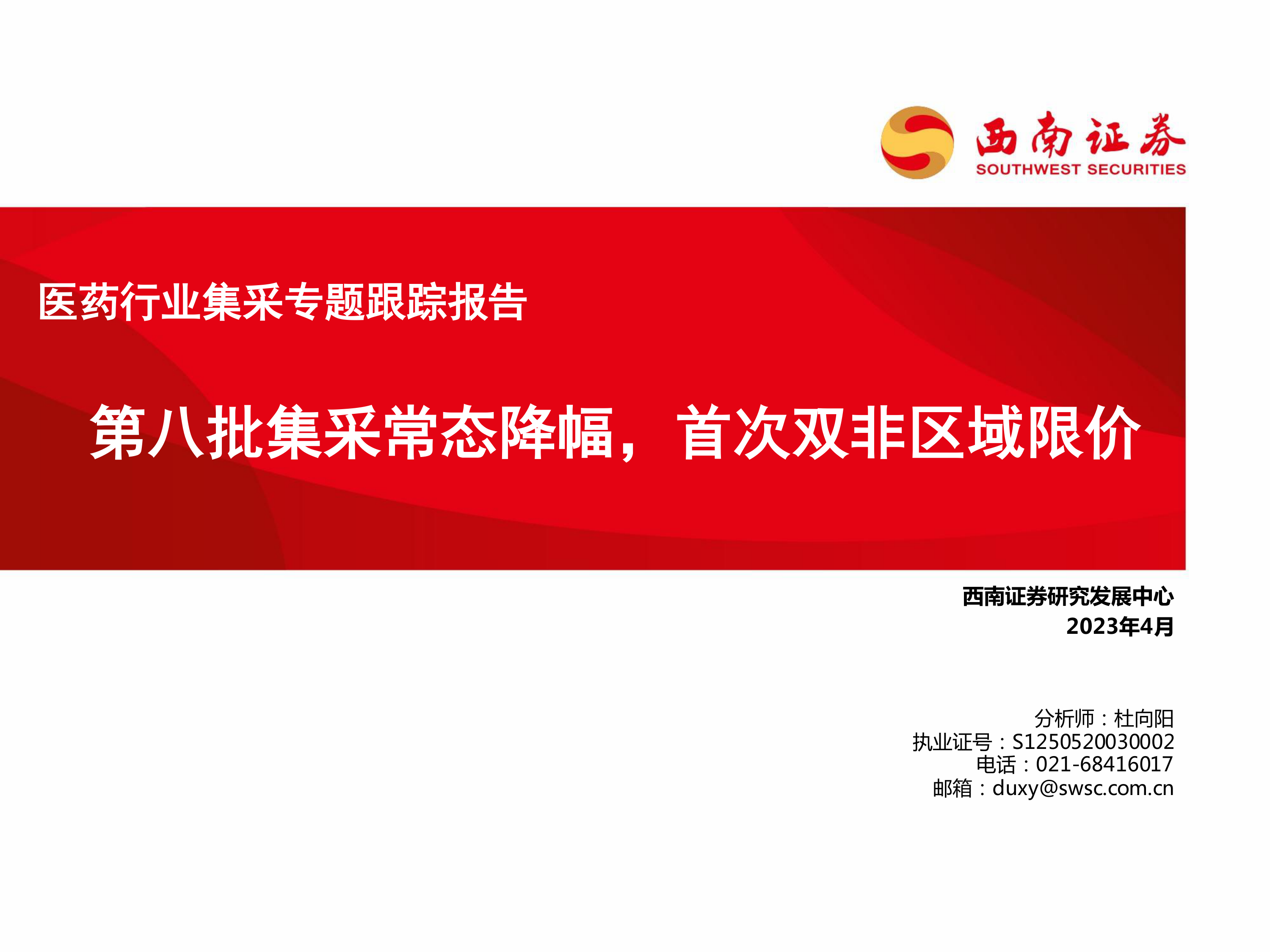 医药行业集采专题跟踪报告:第八批集采常态降幅,首次双非区域限价