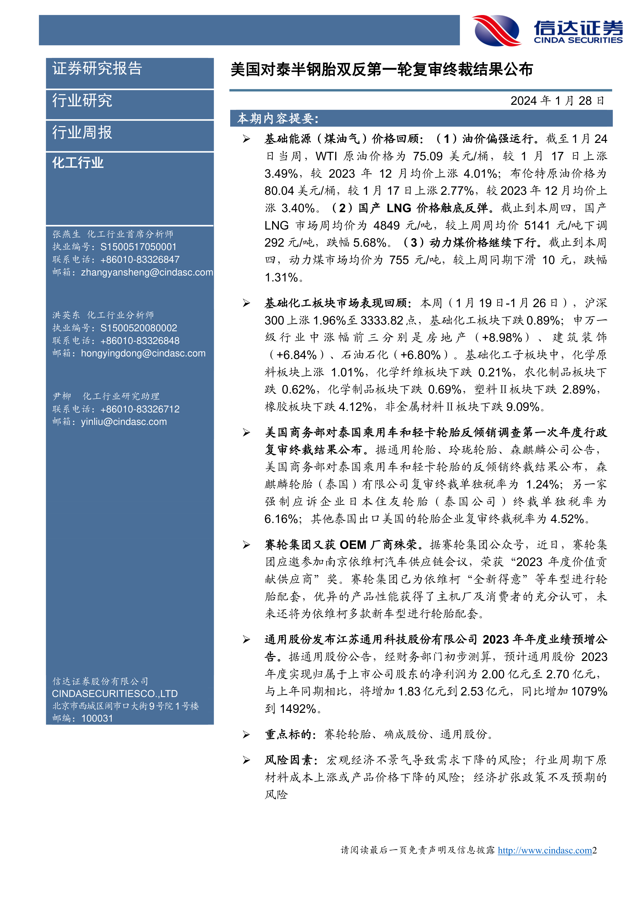化工行业周报:美国对泰半钢胎双反第一轮复审终裁结果公布