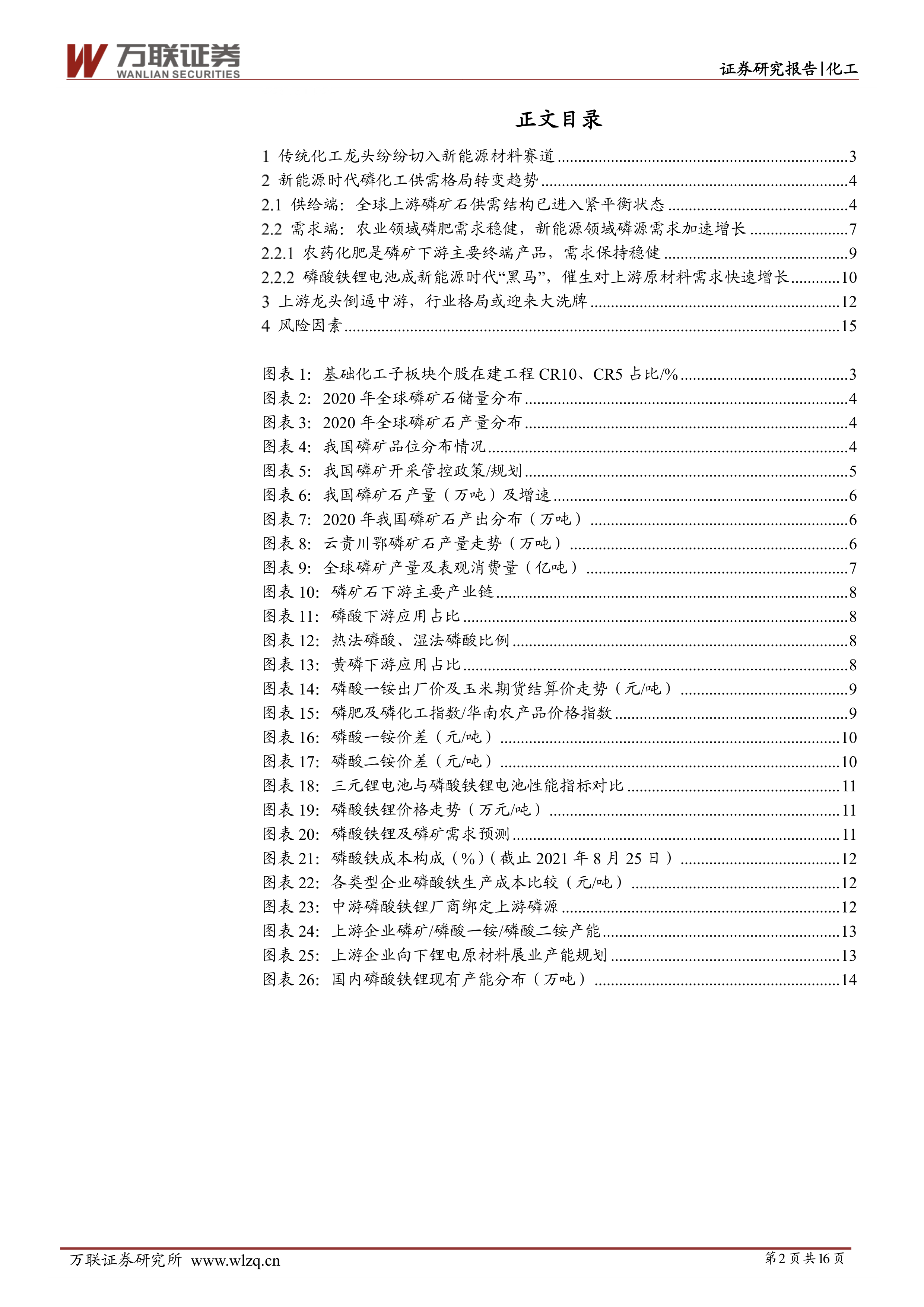 本报告从传统化工龙头企业切入新能源材料赛道、磷化工行业供需格局转变以及行业格局重塑三个方面展开分析。