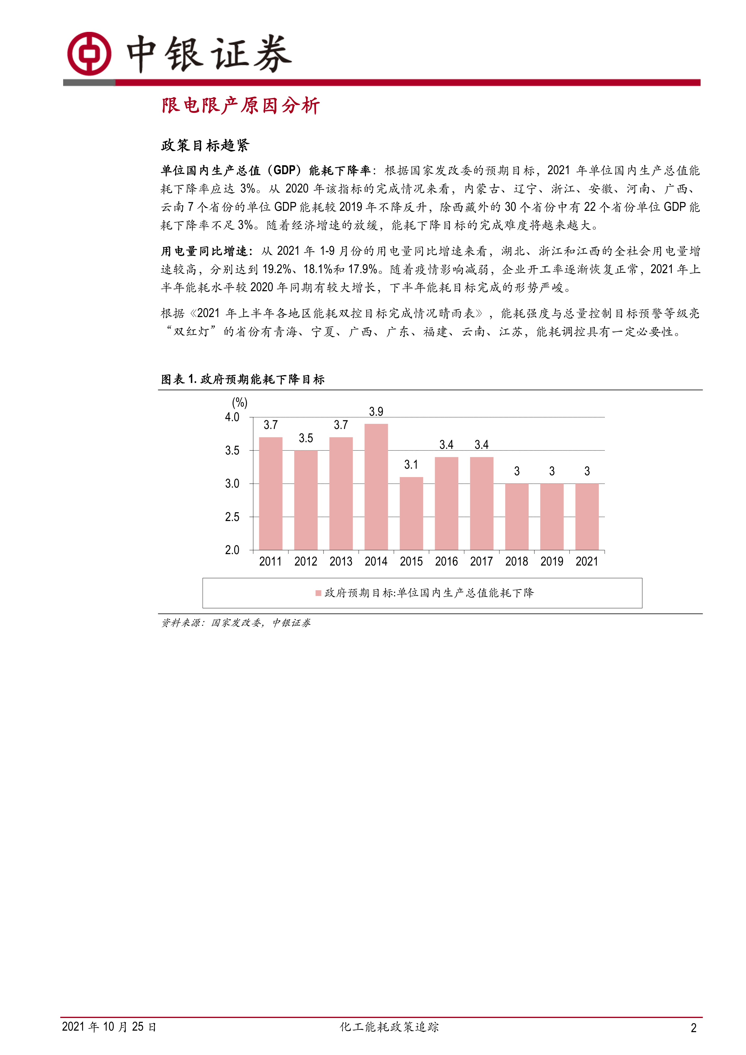 报告首先分析了2021年下半年中国多地出台的“能耗双控”政策和限电措施,指出部分化工企业生产受到影响,例如ST澄星、润丰股份、泰和新材等公司部分厂区受到限电影响。报告还提供了9月份部分化工产品(黄磷、金属硅)的开工率数据,显示开工率环比下降明显。
