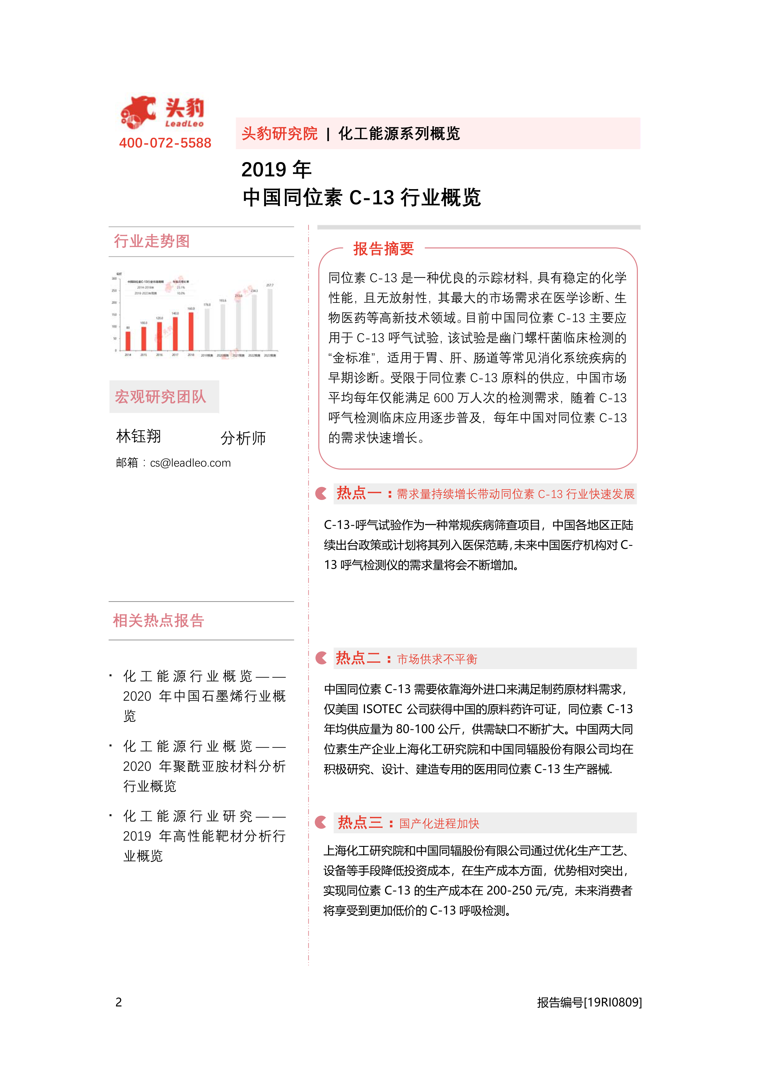 2019年中国同位素C-13行业概览