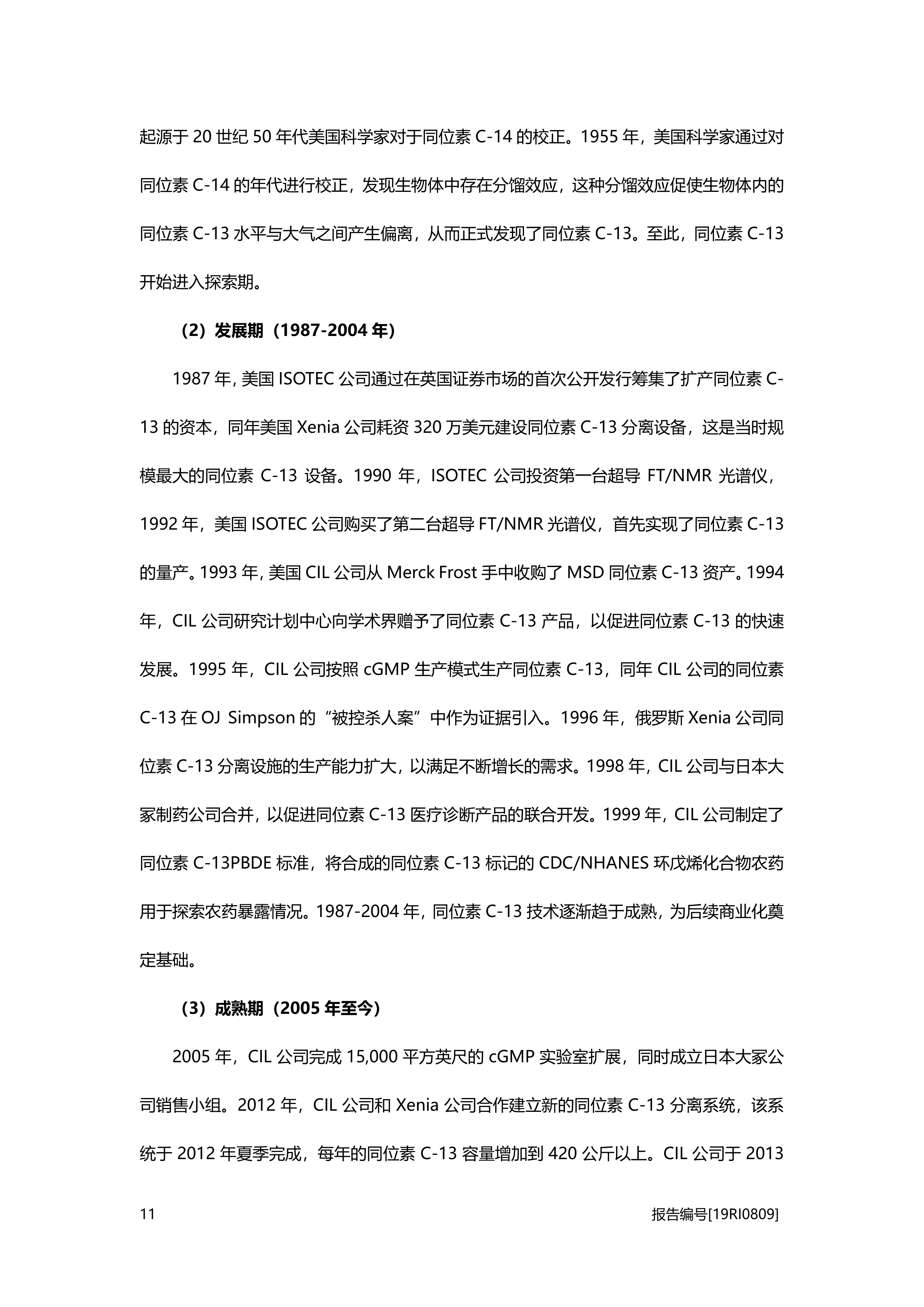 本小节阐述了同位素C-13的定义,并回顾了其从探索期到成熟期的发展历程,重点介绍了美国CIL公司和ISOTEC公司在同位素C-13大规模量产方面所做的贡献。