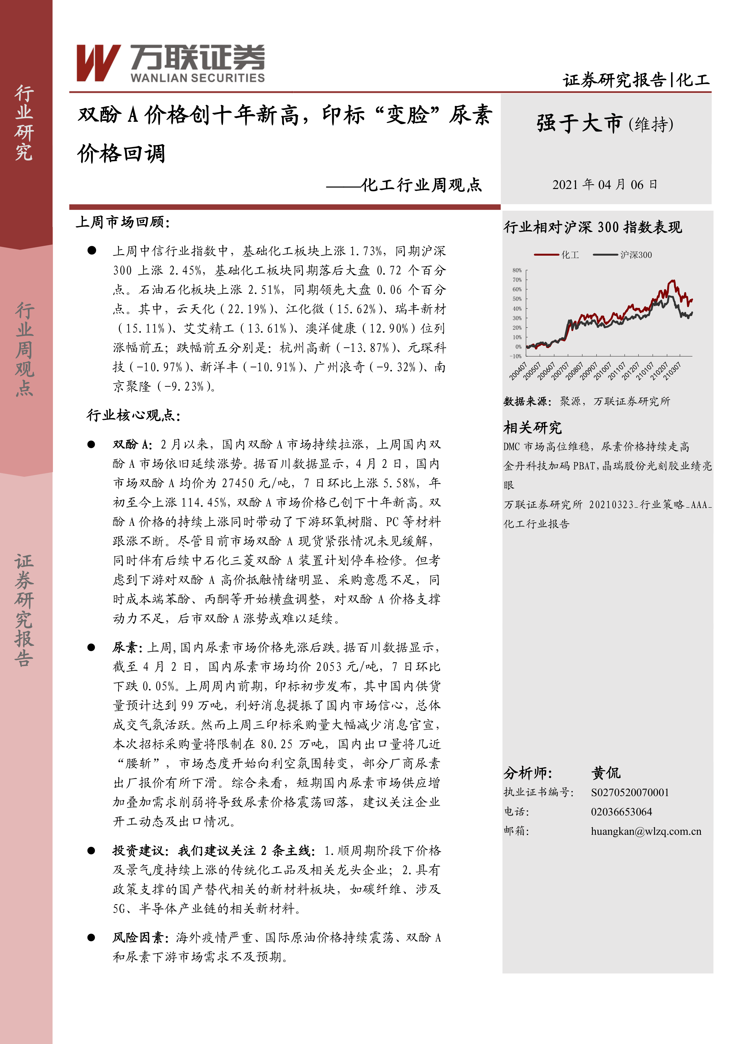 化工行业周观点:双酚A价格创十年新高,印标“变脸”尿素价格回调