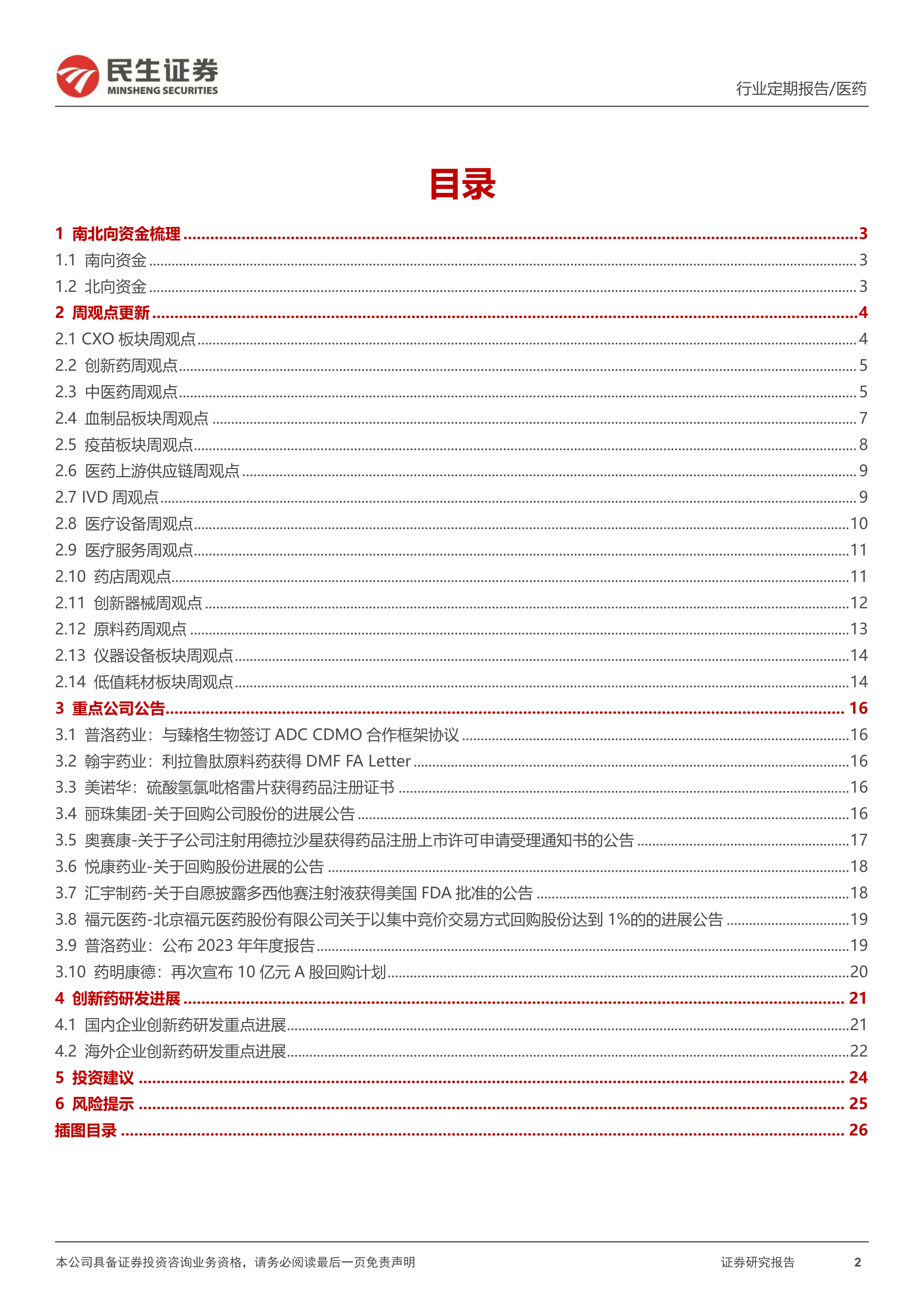 本报告涵盖了医药行业多个细分领域,并对南北向资金流向进行了梳理,内容详实,数据丰富。