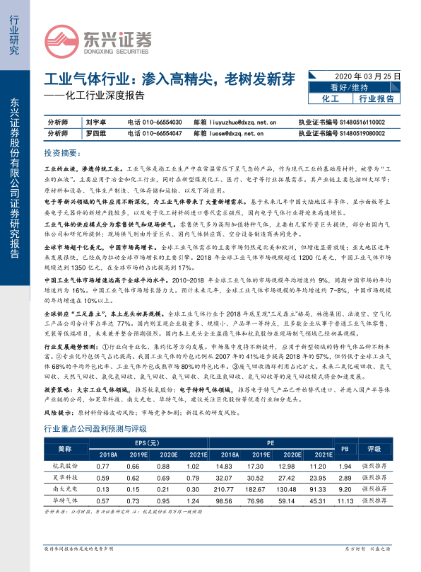 化工行业深度报告:工业气体行业:渗入高精尖,老树发新芽