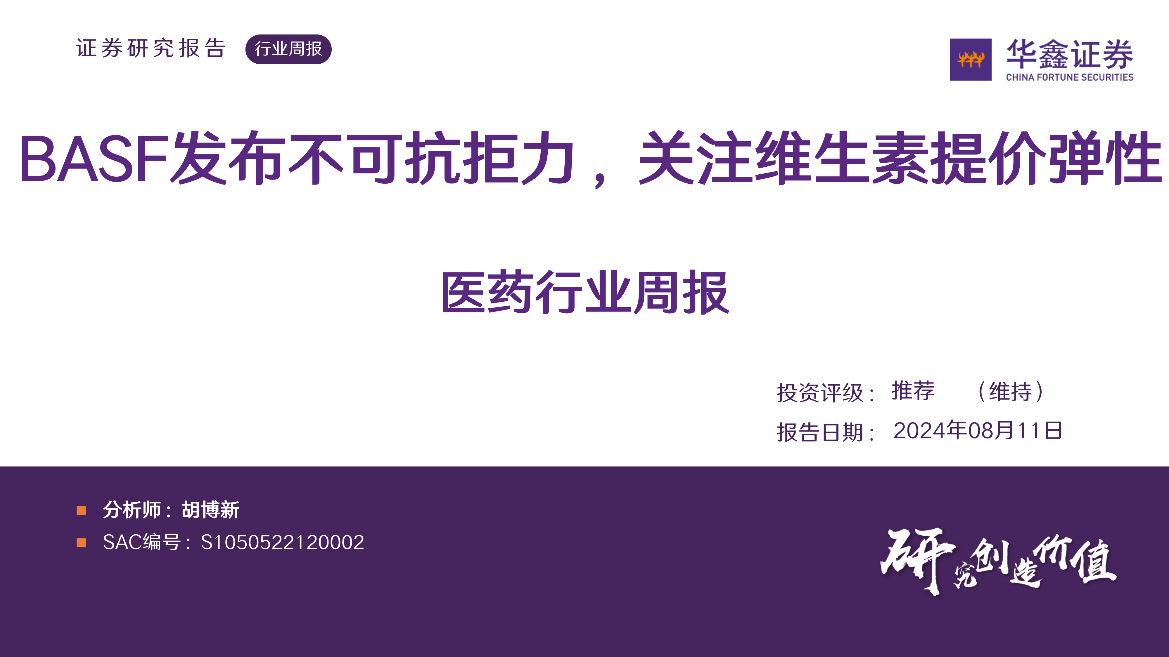 医药行业周报:BASF发布不可抗拒力,关注维生素提价弹性