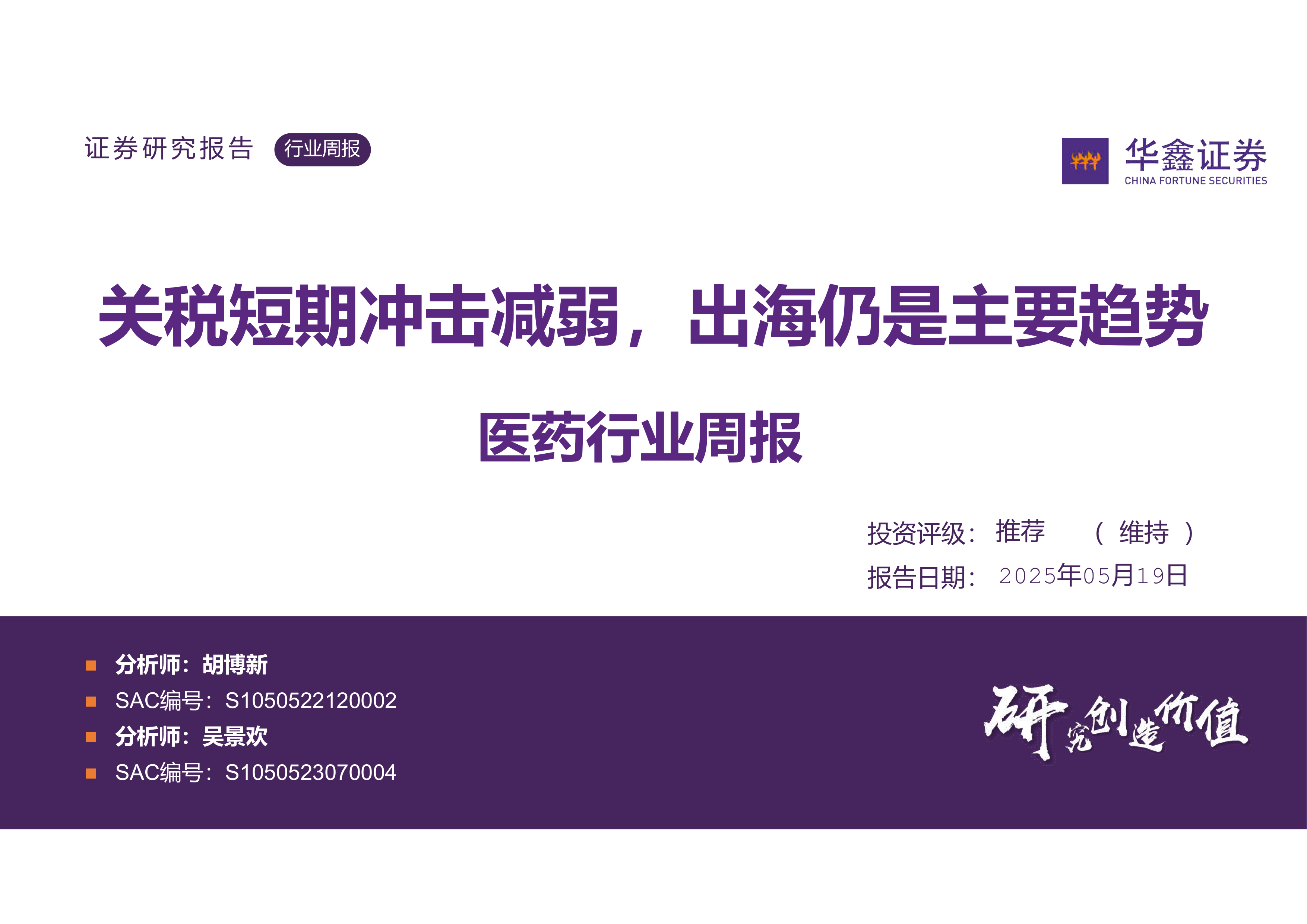 医药行业周报:关税短期冲击减弱,出海仍是主要趋势