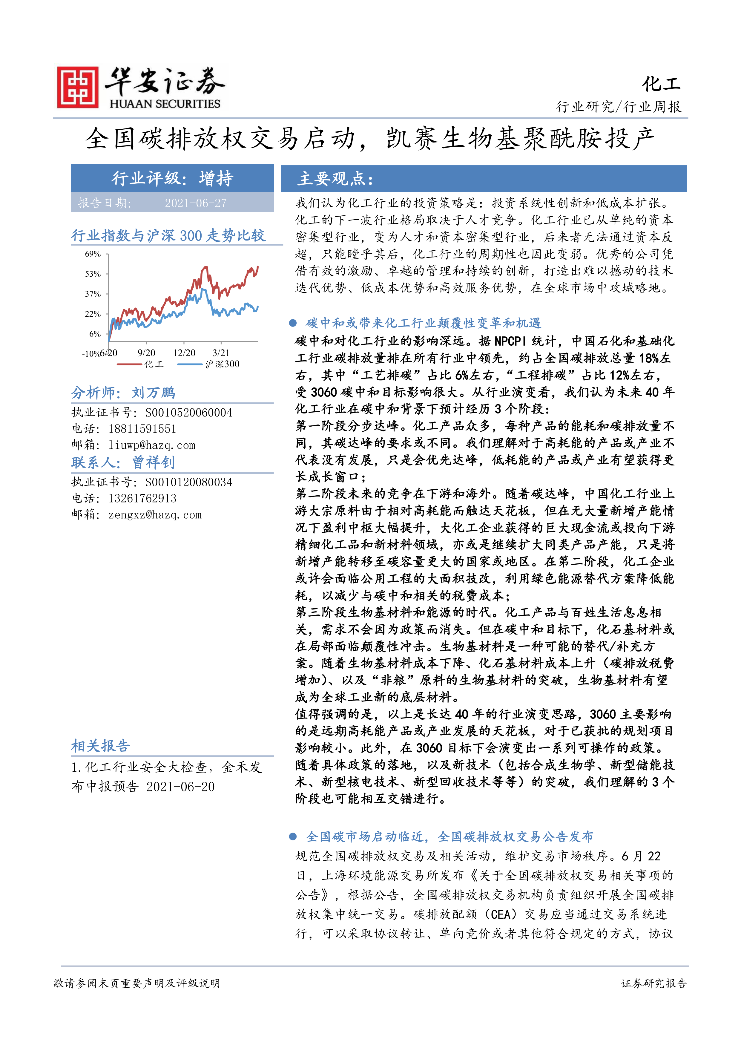 化工行业周报:全国碳排放权交易启动,凯赛生物基聚酰胺投产