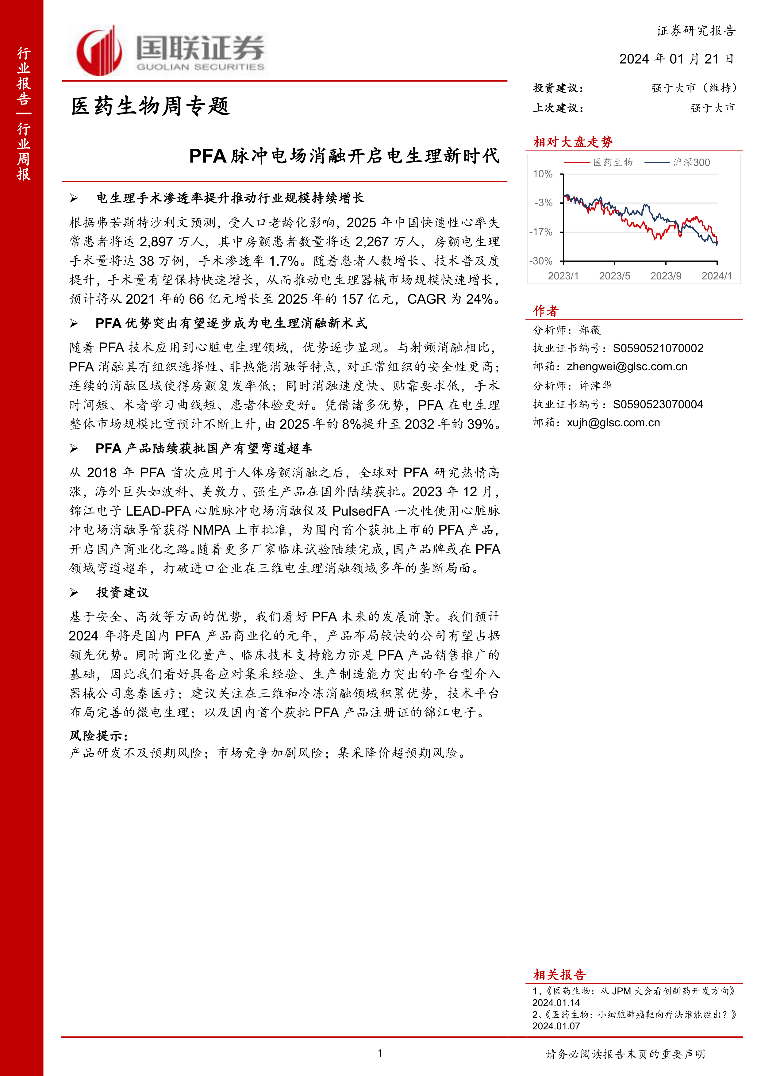 医药生物周专题:PFA脉冲电场消融开启电生理新时代