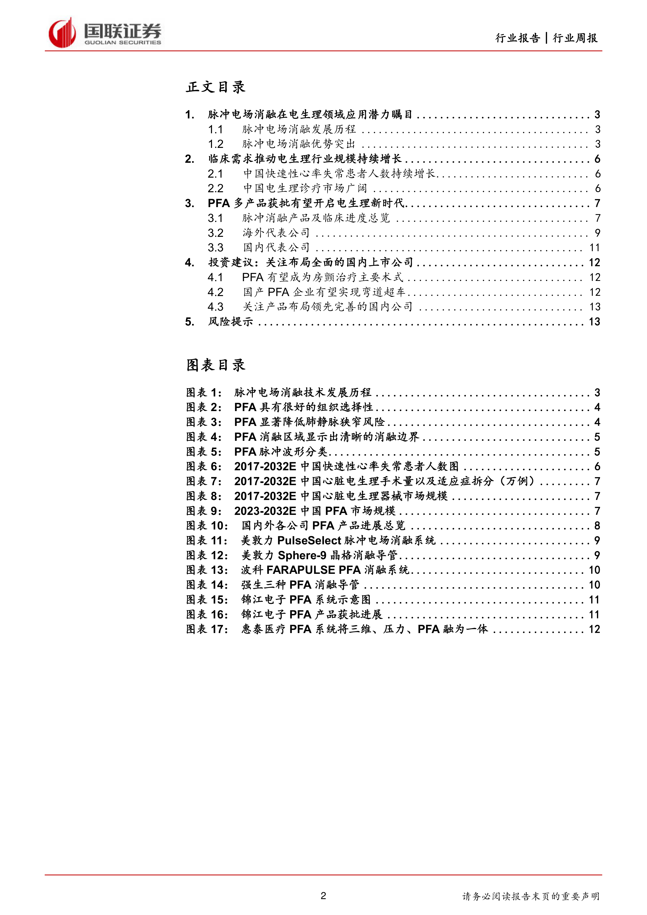 报告最后给出了投资建议,建议关注在PFA领域布局全面、技术领先、商业化能力强的国内上市公司,例如惠泰医疗、锦江电子等。同时,报告也指出了PFA投资的潜在风险,包括产品研发不及预期风险、市场竞争加剧风险以及集采降价超预期风险。