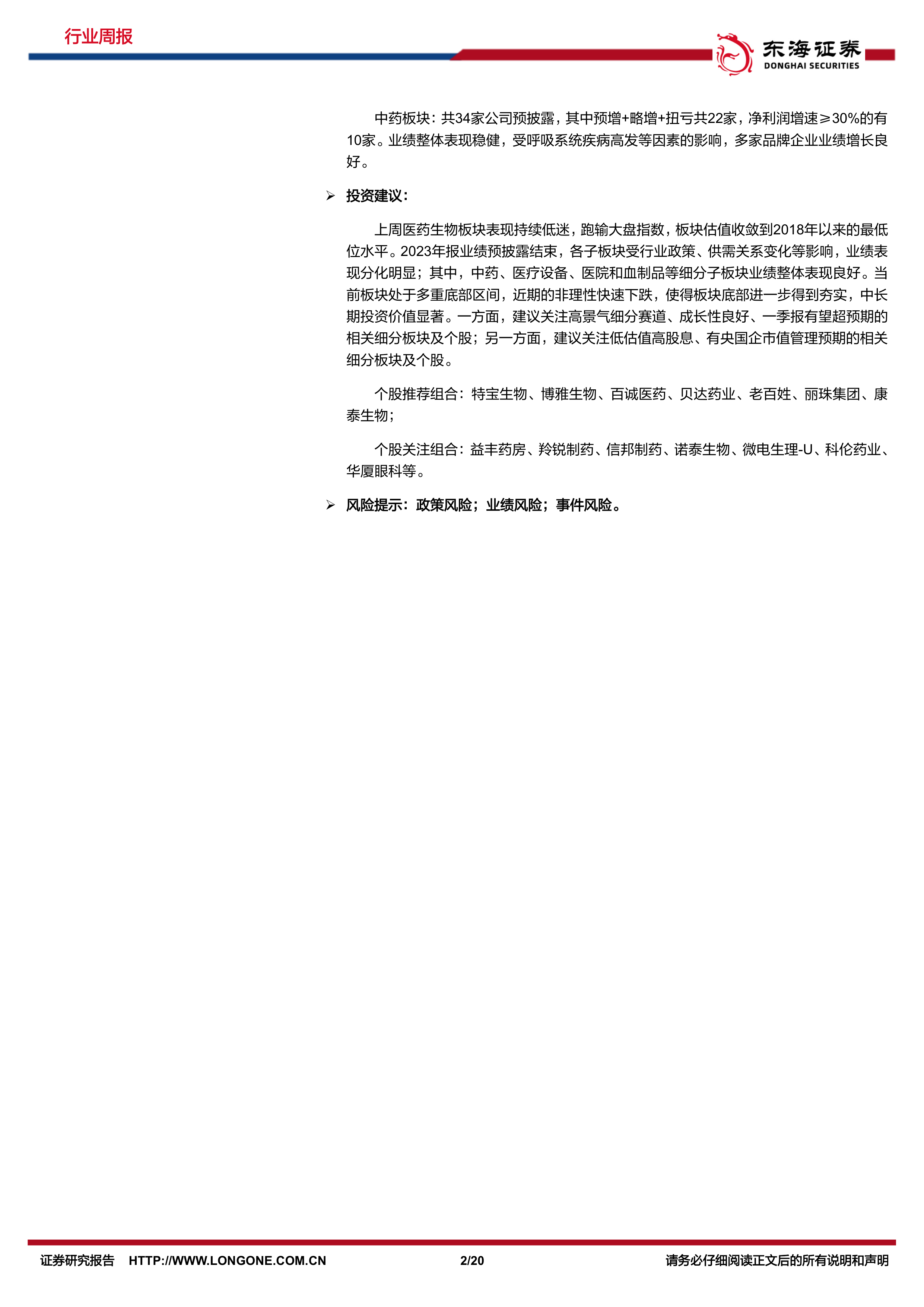 个股关注组合:益丰药房、羚锐制药、信邦制药、诺泰生物、微电生理-U、科伦药业华厦眼科等。