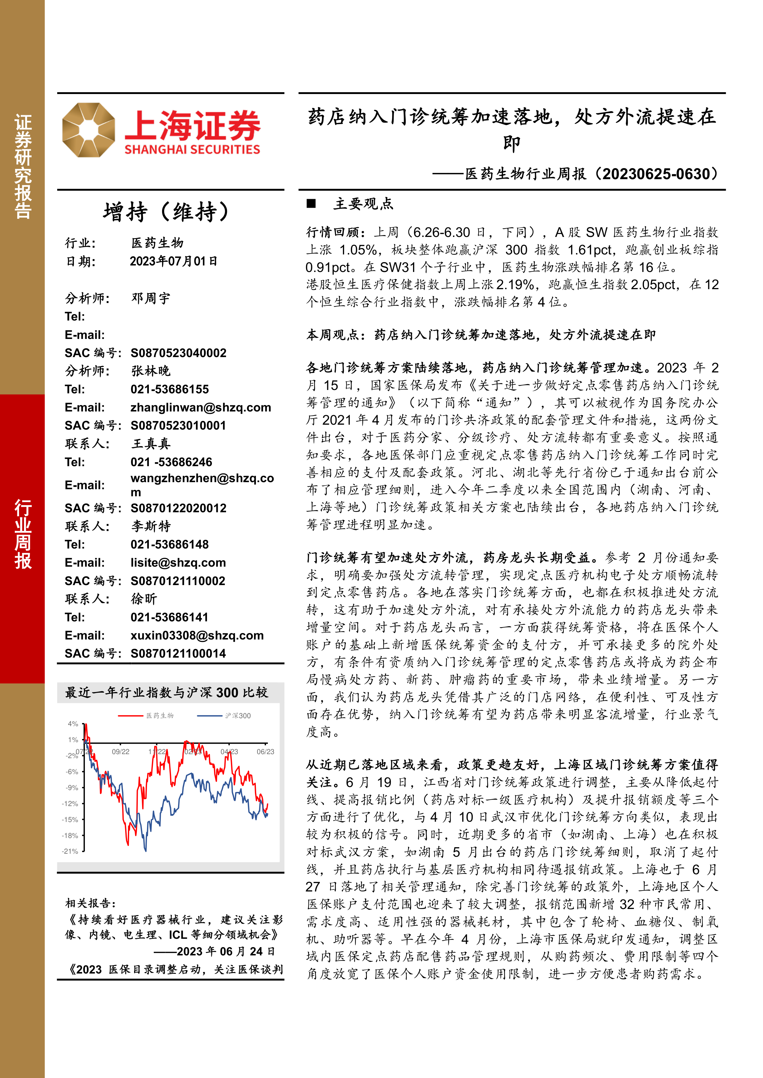本周观点:药店纳入门诊统筹加速落地,处方外流提速在即