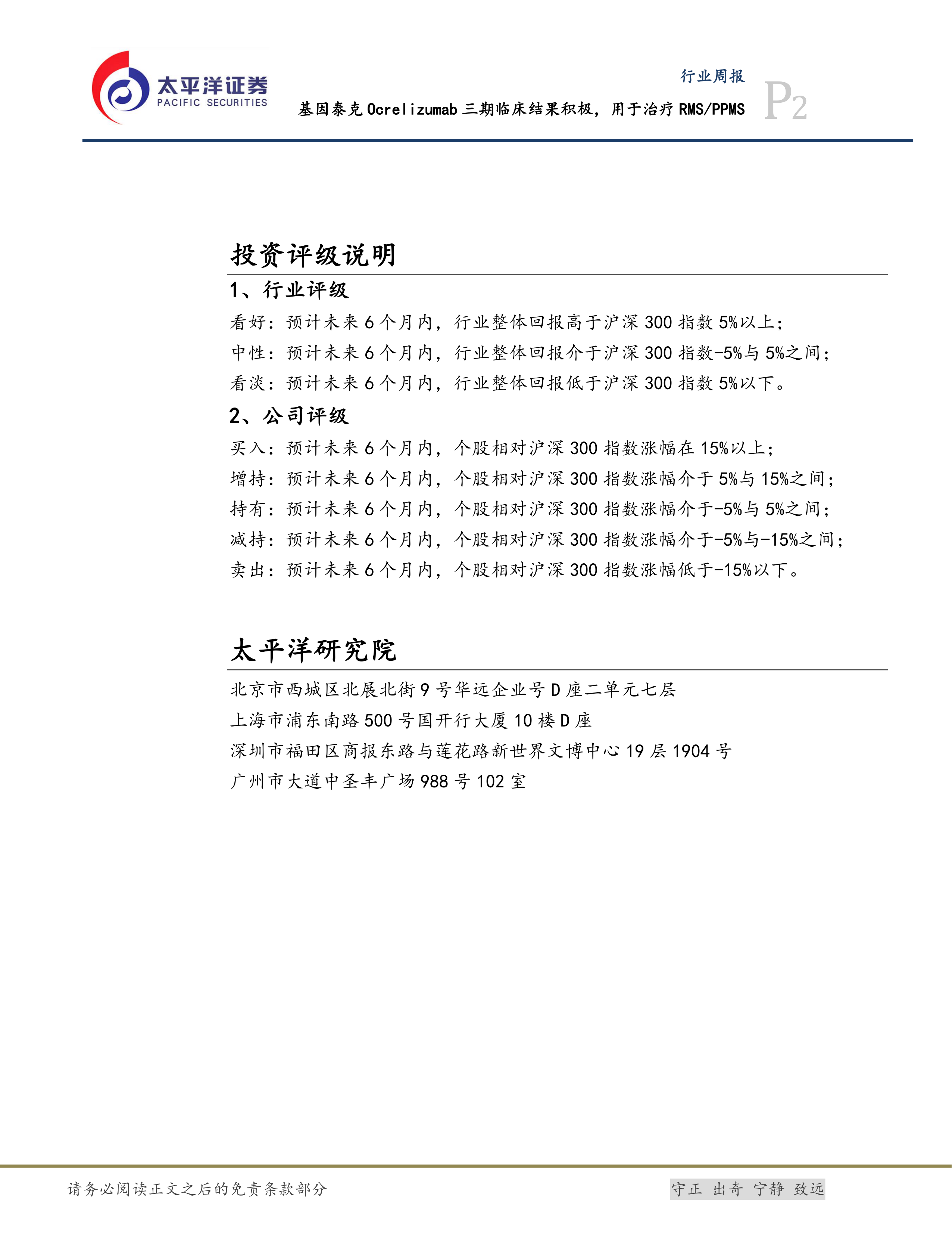 医药行业周报:基因泰克Ocrelizumab三期临床结果积极,用于治疗RMS/PPMS