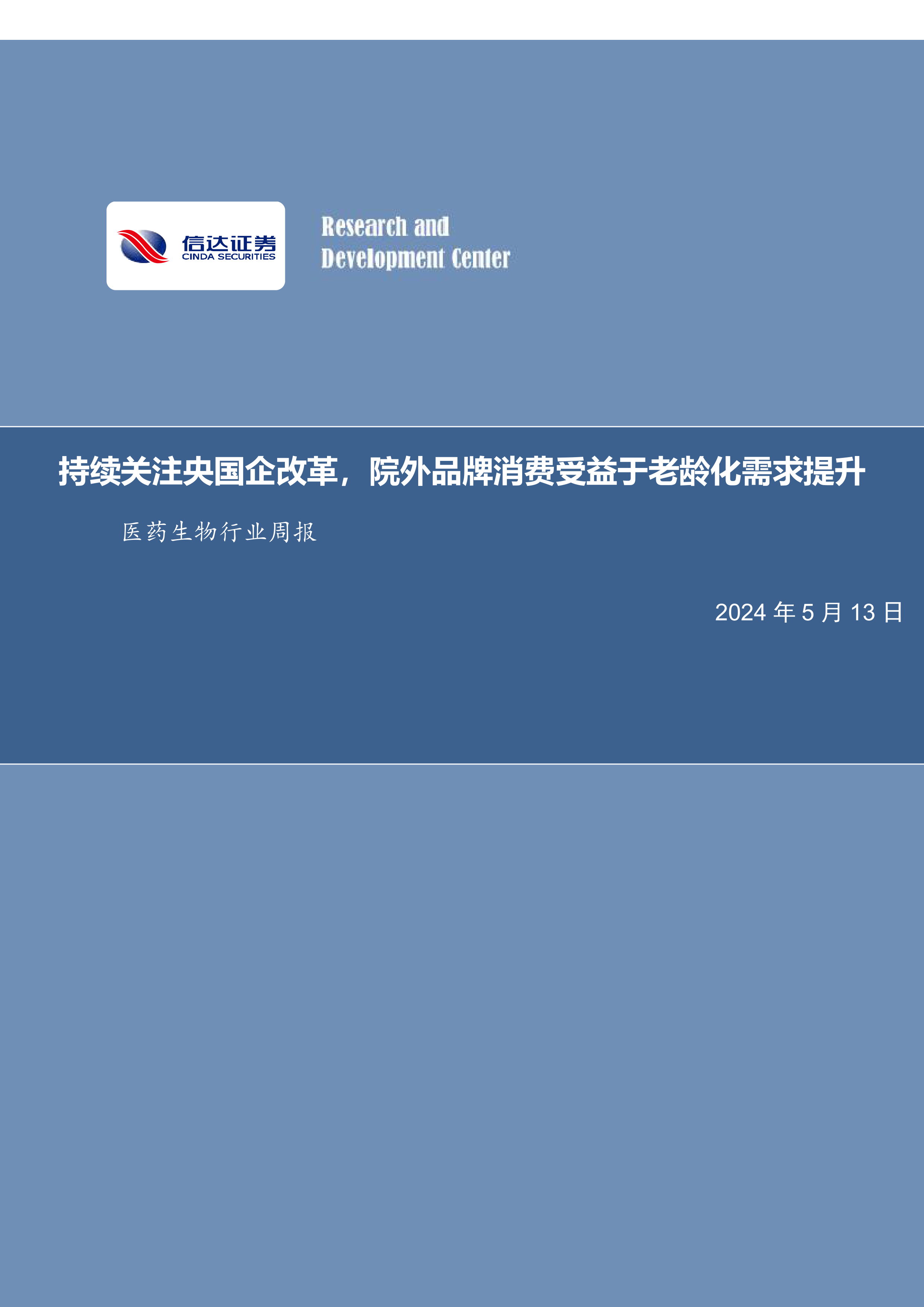 医药生物行业周报:持续关注央国企改革,院外品牌消费受益于老龄化需求提升