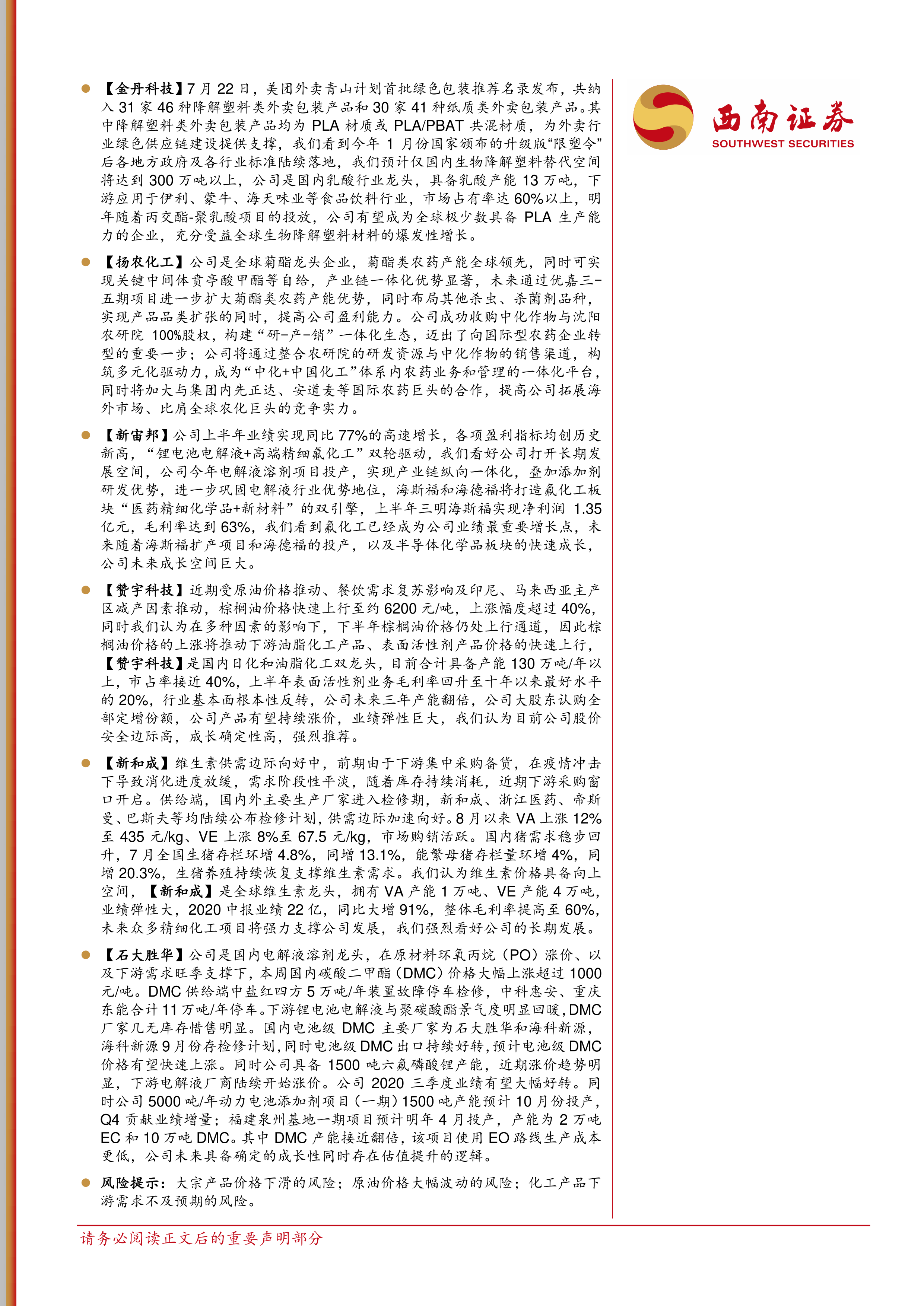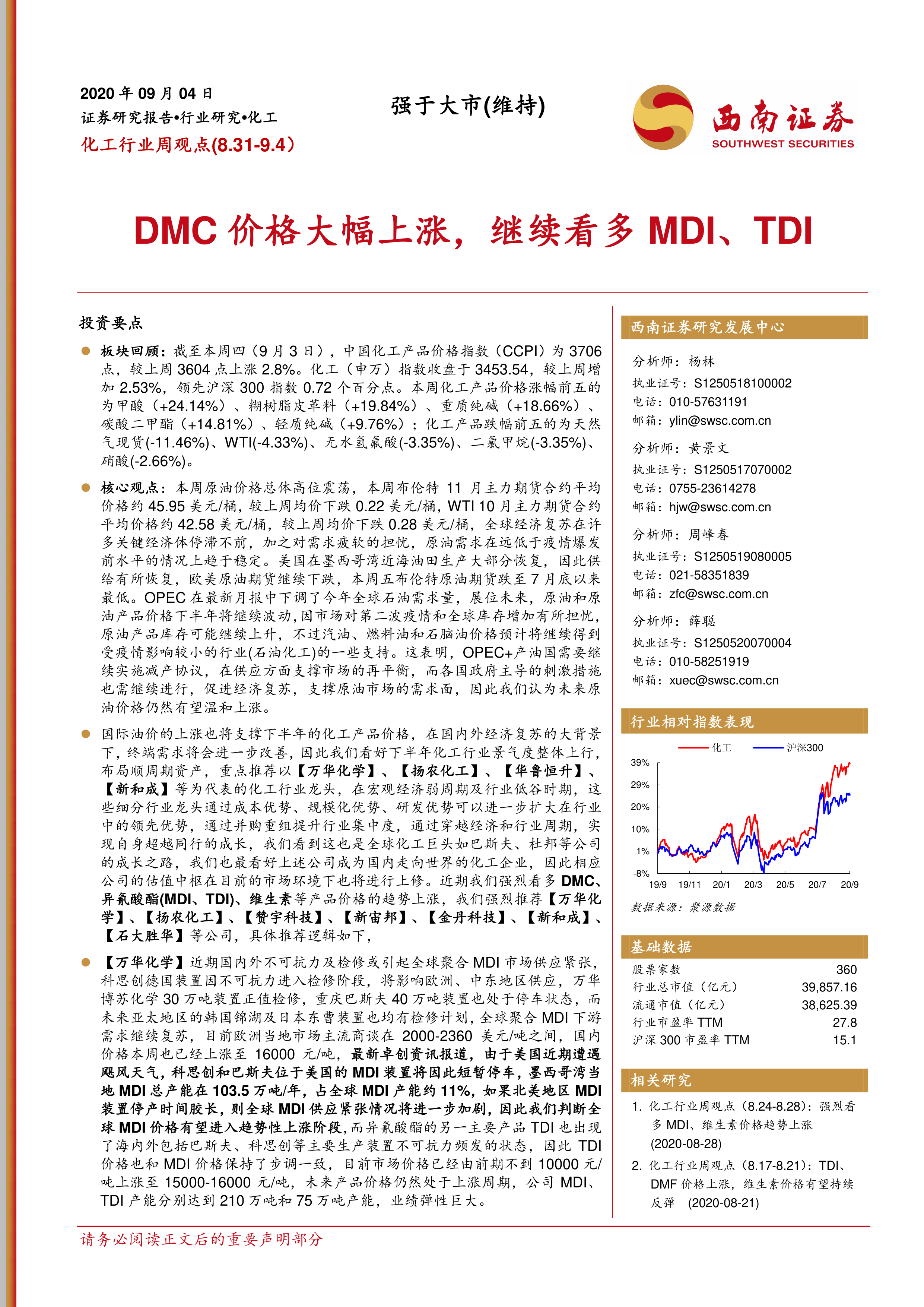 本报告为西南证券发布的化工行业周观点报告(8.31-9.4),主要内容如下: