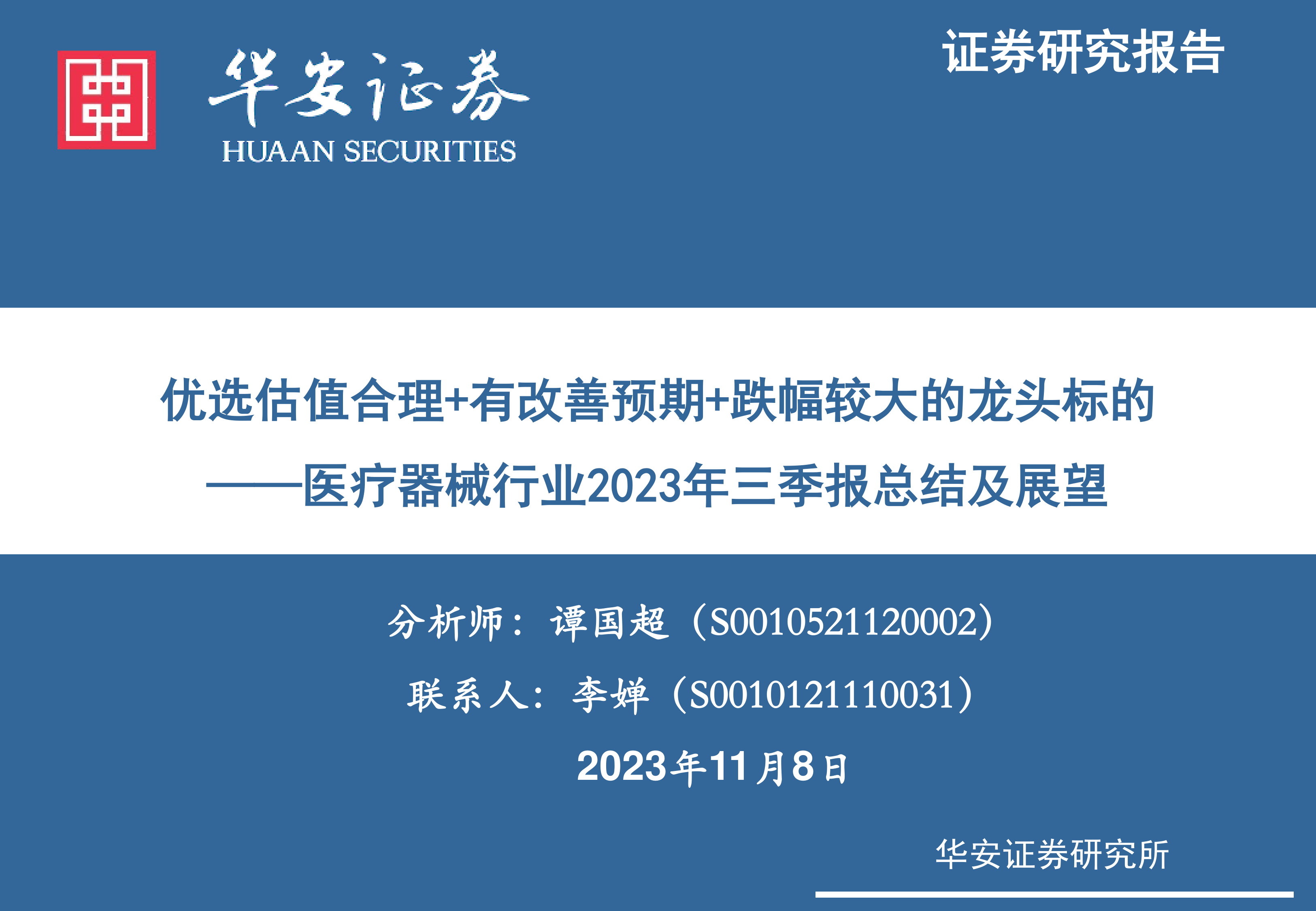 医疗器械行业2023年三季报总结及展望:优选估值合理+有改善预期+跌幅较大的龙头标的
