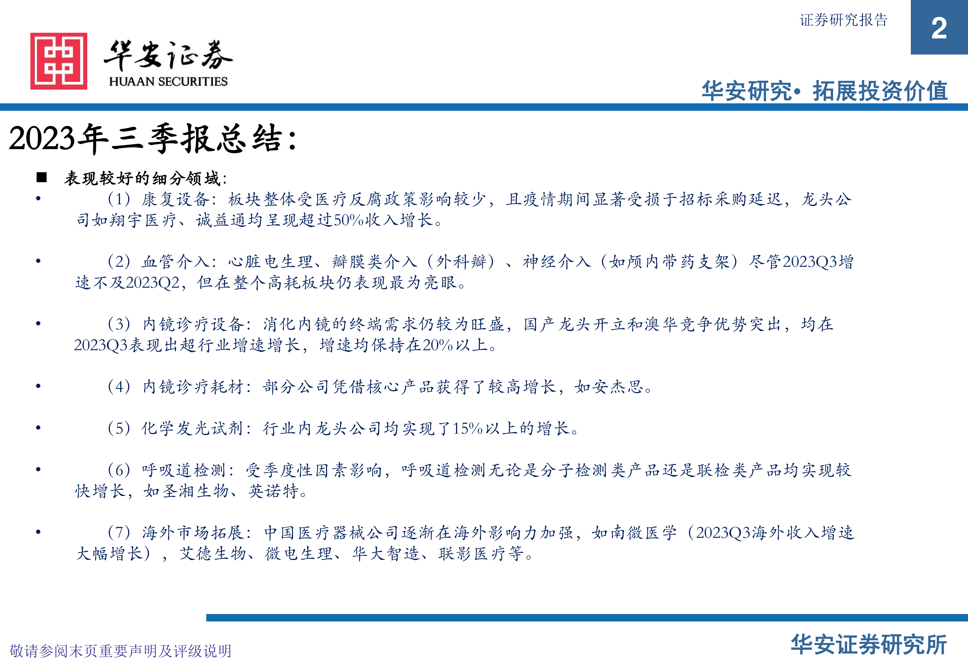 本报告主要从医疗设备、体外诊断、高值耗材、低值耗材四个方面,对2023年三季度医疗器械行业进行了总结和展望,并对重点标的进行了推荐。