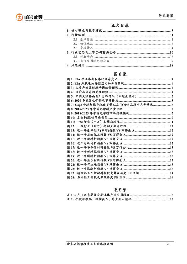 报告详细分析了IEA上调2023年和2024年石油需求预期、石油和化工行业景气指数持续上行、智能手机面板市场“量价齐升”以及大基金二期投资算力芯片公司等重要行业动态。同时,报告还对科思股份、金正大、壹石通、皖维高新和海科新源等多家上市公司的重要公告进行了梳理和解读,内容涵盖投资建设项目、战略合作等方面。