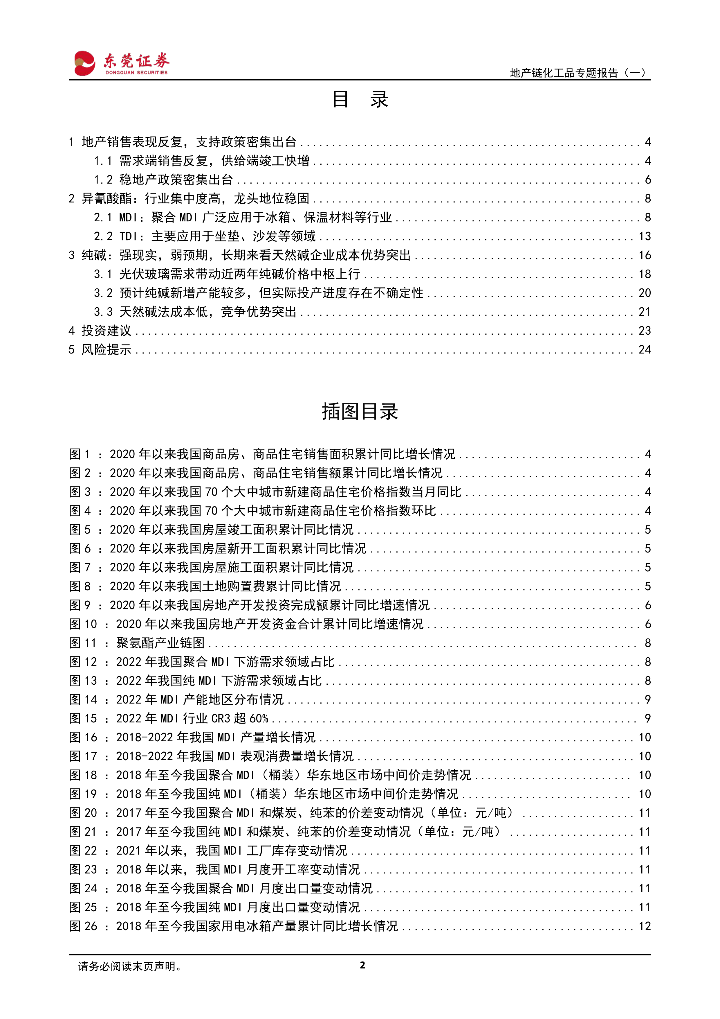 地产链化工品专题报告(一):MDI、TDI竞争格局优异,纯碱短期价格偏强运行