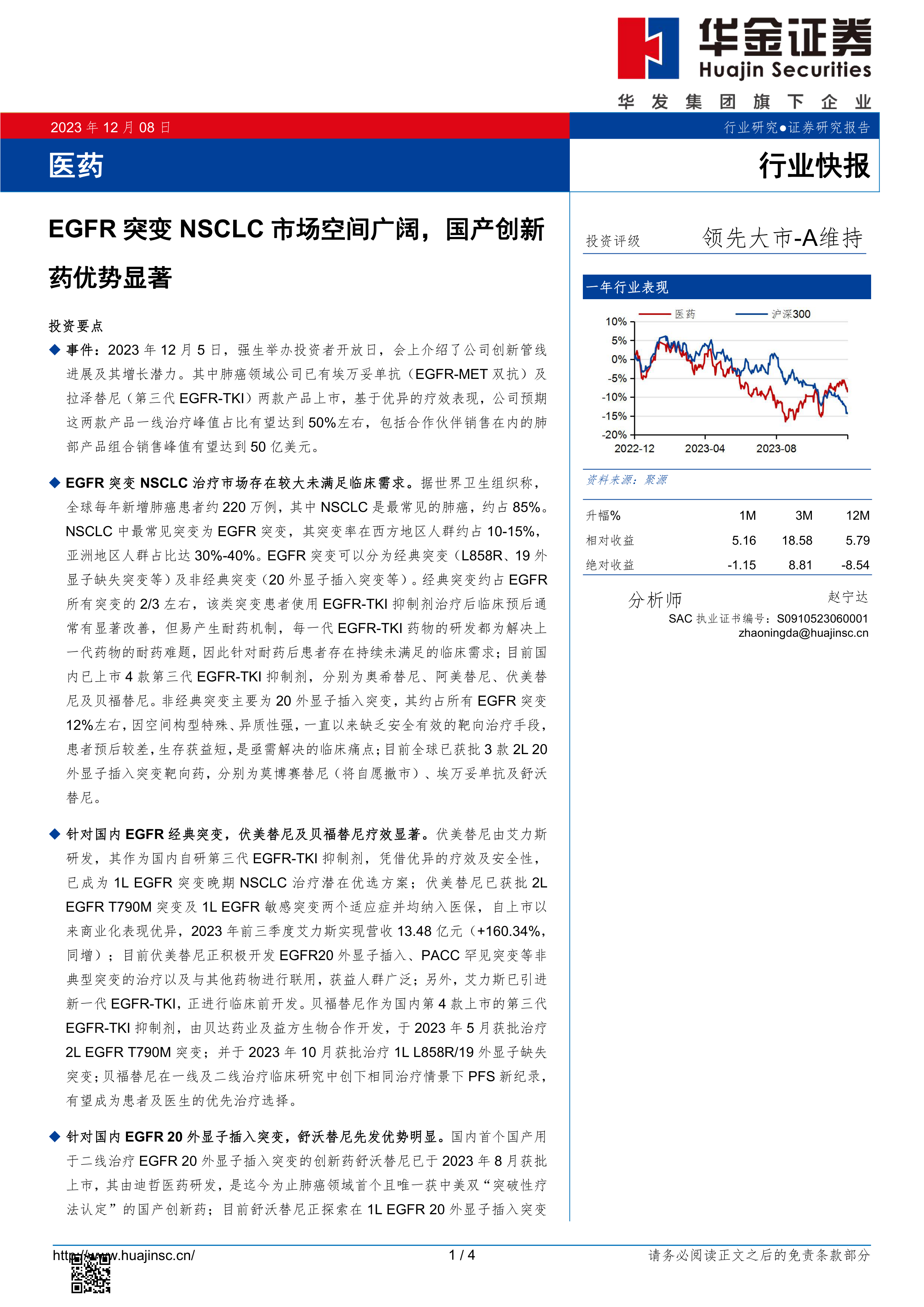 医药:EGFR突变NSCLC市场空间广阔,国产创新药优势显著
