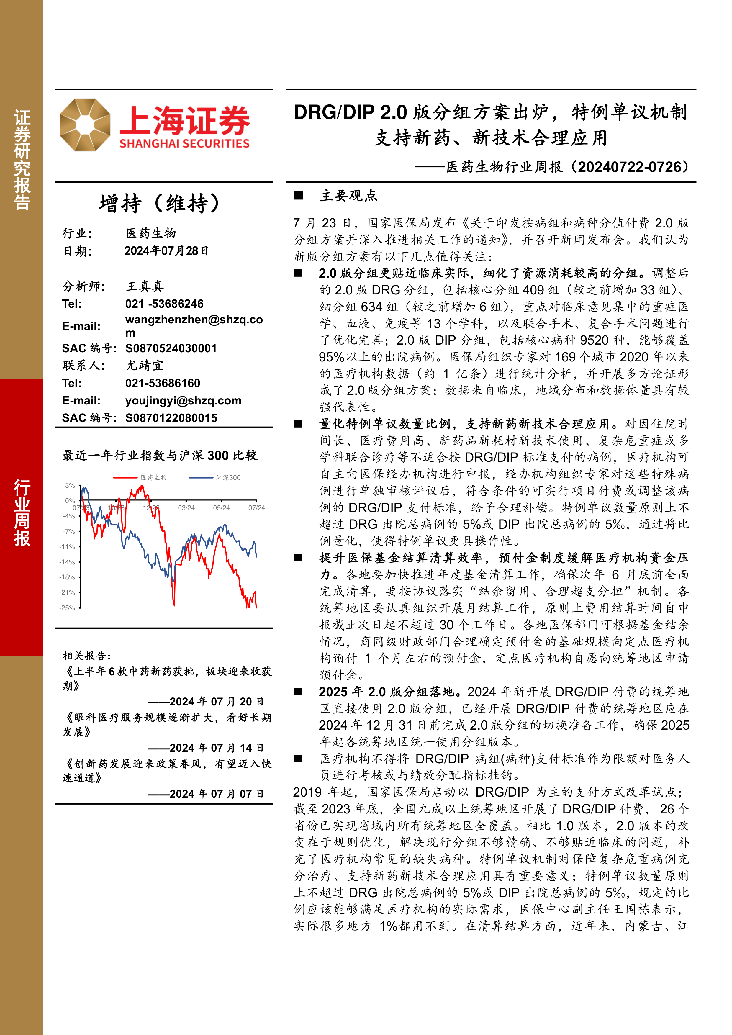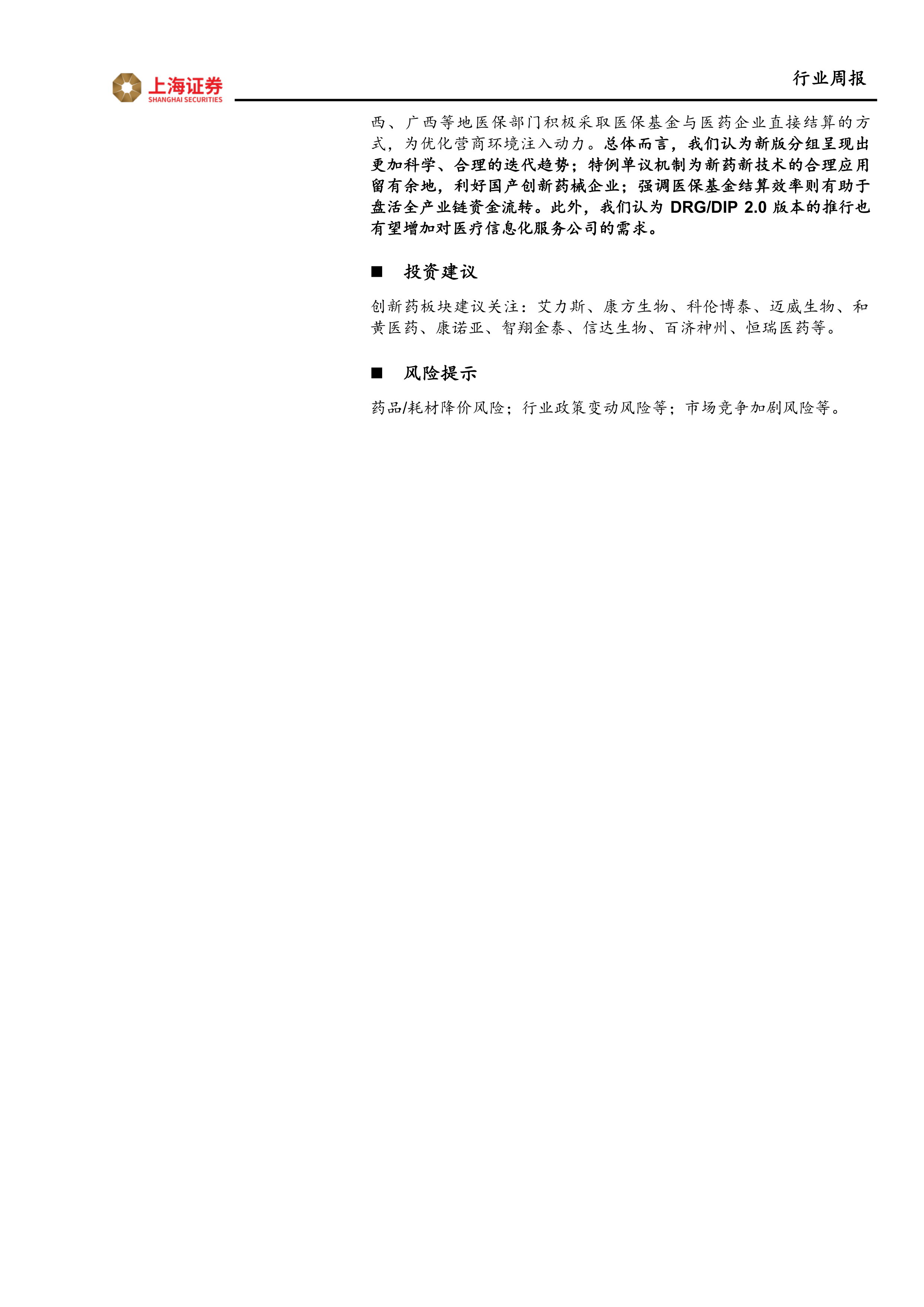 医药生物行业周报:DRG/DIP 2.0版分组方案出炉,特例单议机制支持新药、新技术合理应用