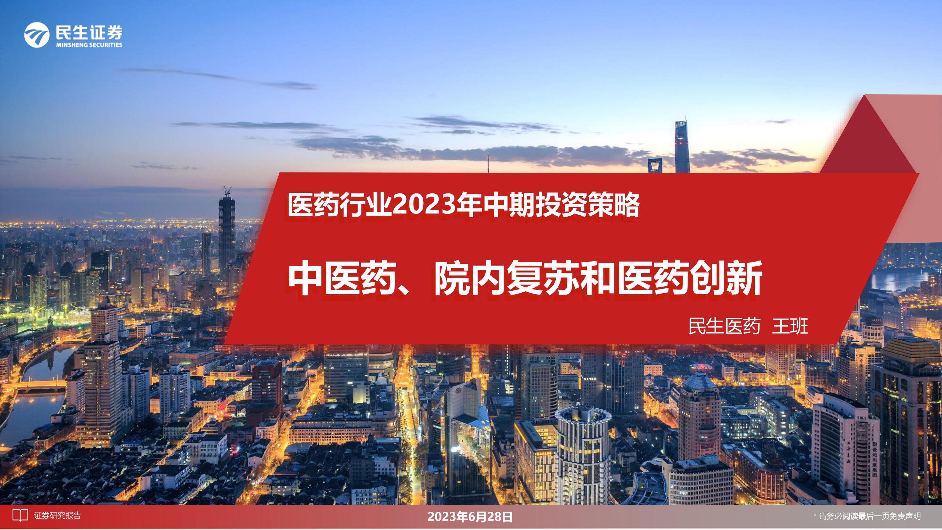 本报告基于公开数据,对医药行业2023年中期投资策略进行了全面分析。报告认为,医药板块整体向好,下半年增长潜力巨大,建议关注中医药、院内复苏和医药创新等方向的龙头企业。 报告也提示了集采压力、研发进度、竞争加剧、政策监管环境变化以及疫后复苏不及预期等风险。 投资者应根据自身风险承受能力和投资目标,谨慎决策。