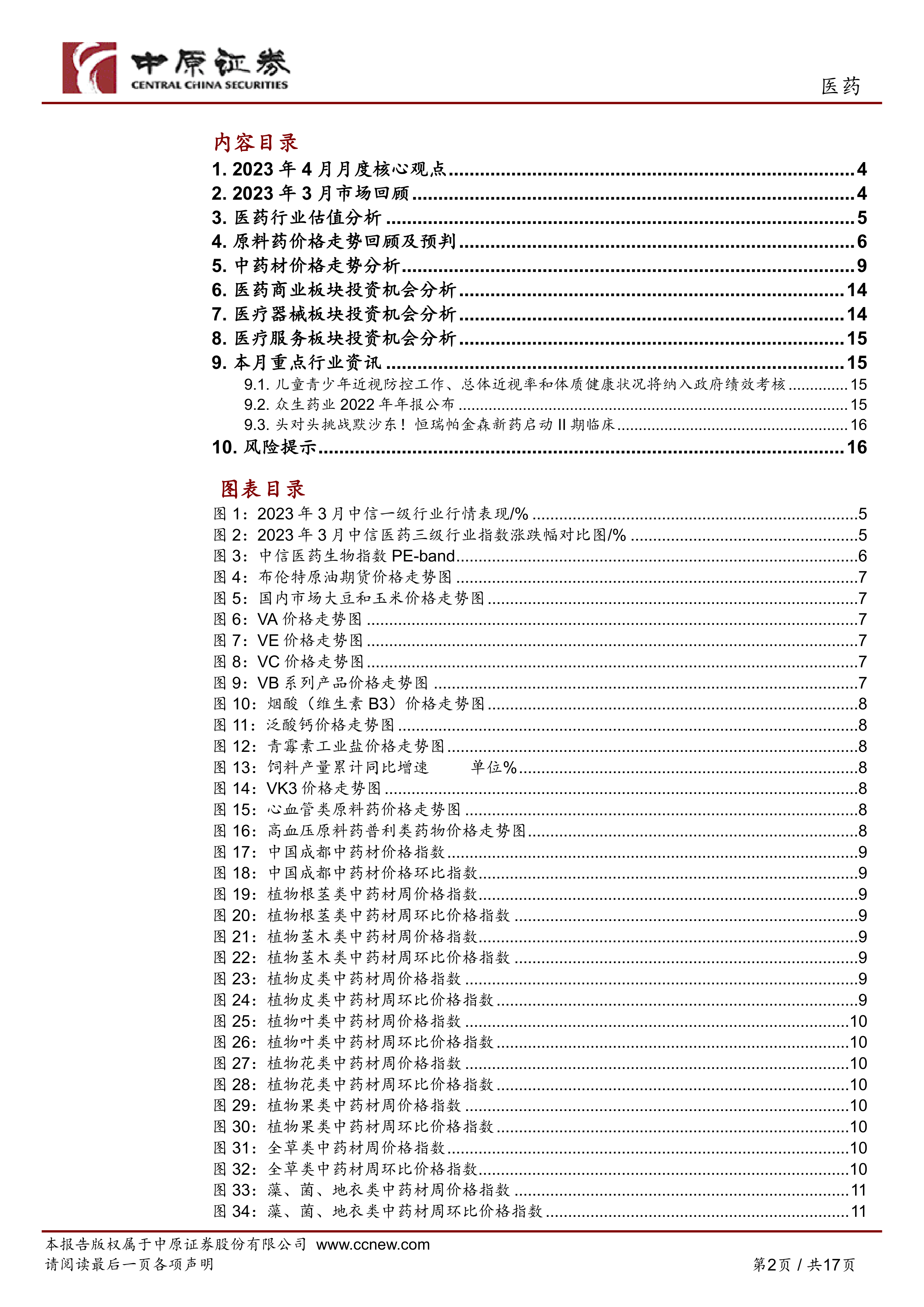 本报告以2023年4月为时间节点,对医药行业进行了月度分析,内容涵盖市场行情回顾、估值分析、原料药价格走势、中药材价格走势以及各主要医药板块的投资机会分析,并对部分行业资讯进行了简要解读。