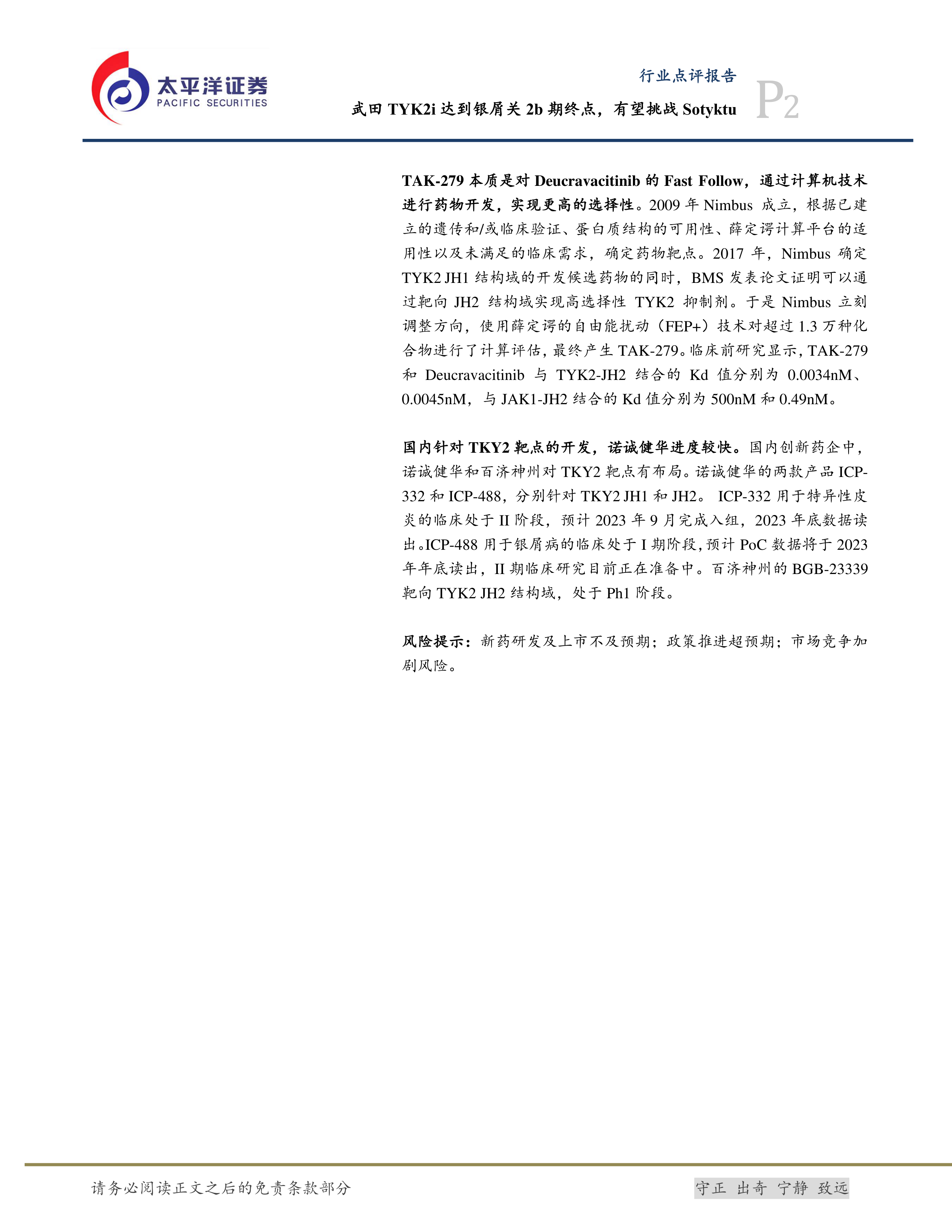 医药生物行业点评报告:武田TYK2i达到银屑关2b期终点,有望挑战Sotyktu