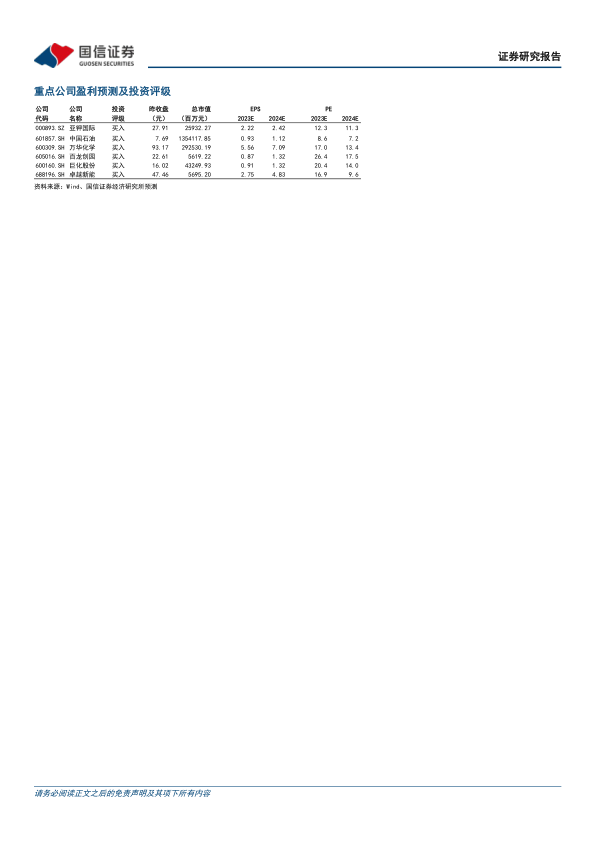 报告对多个重点化工行业进行了深入的跟踪分析,包括: